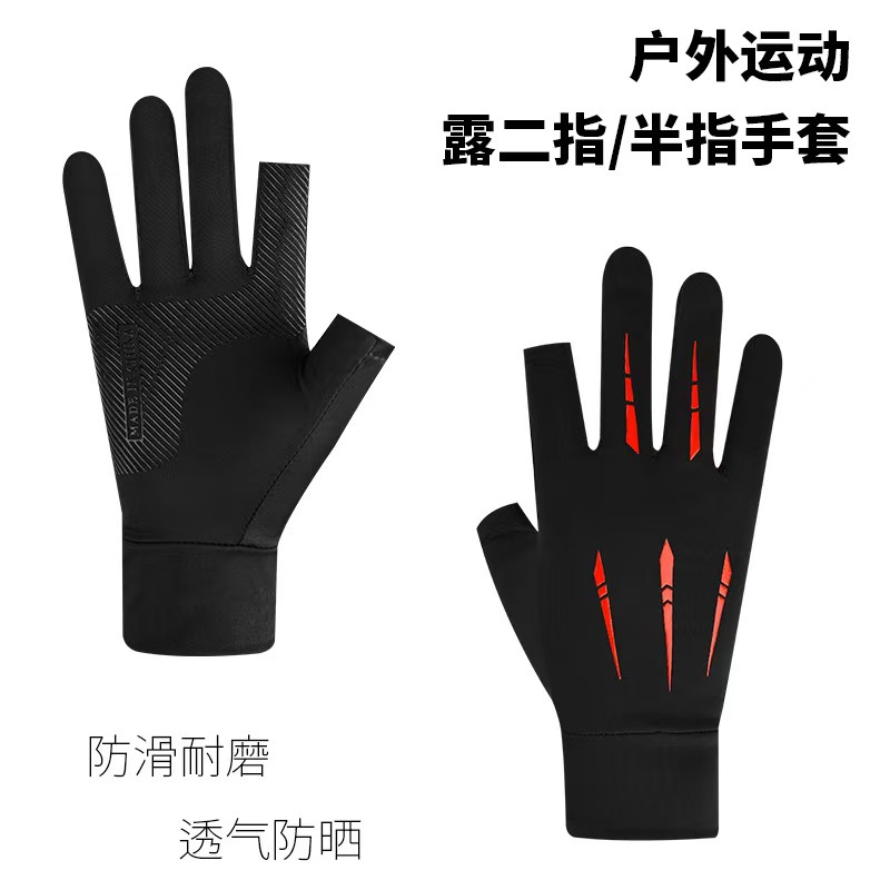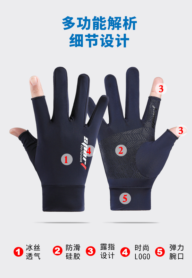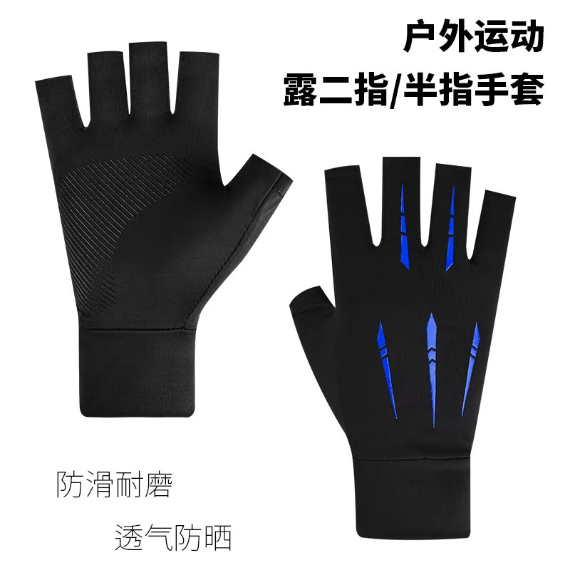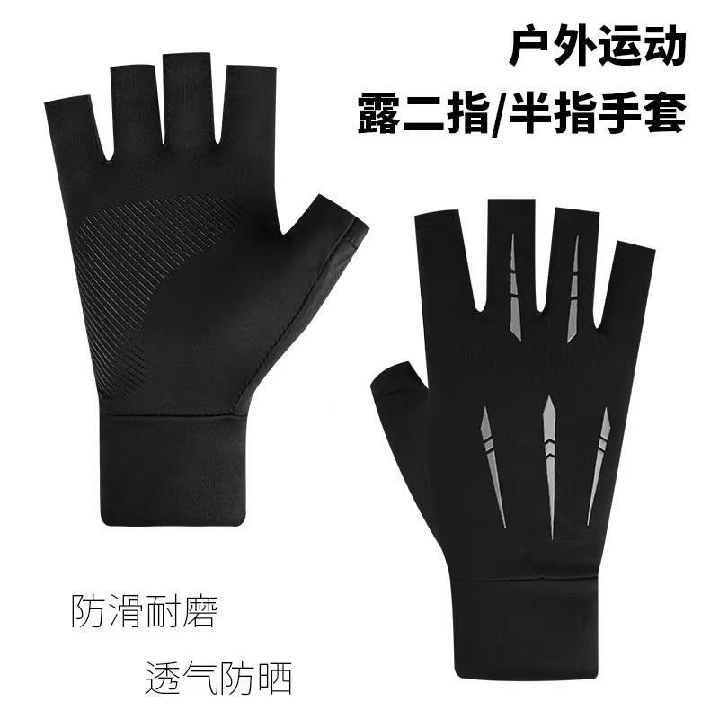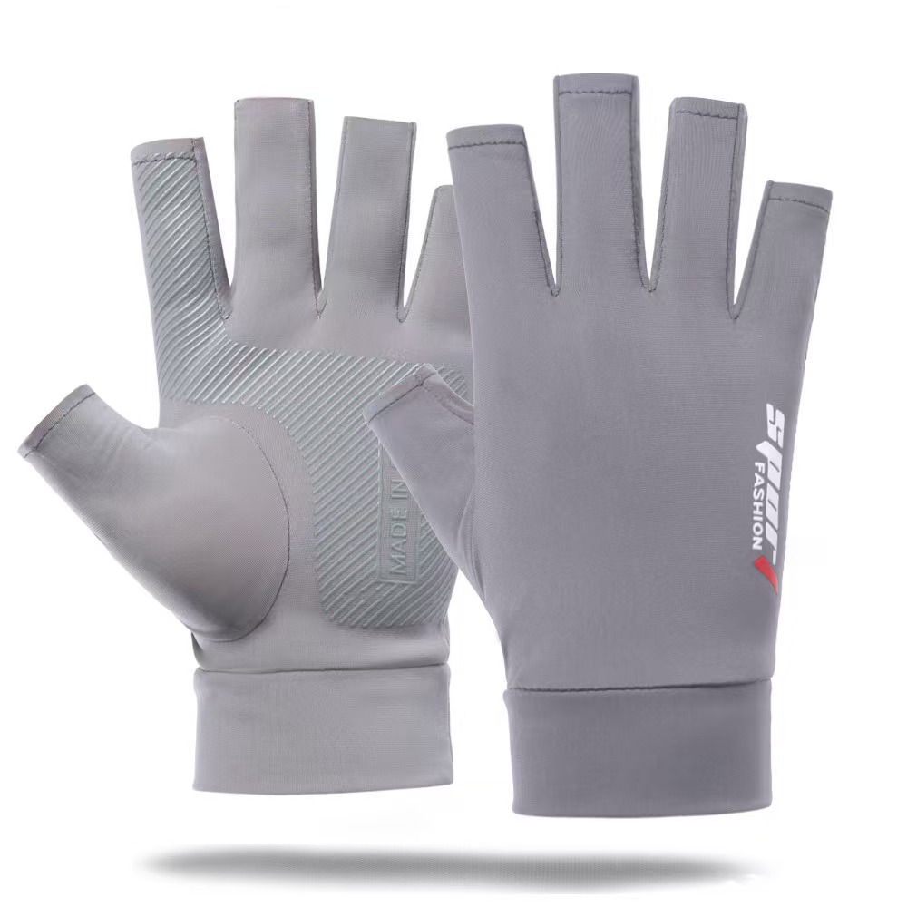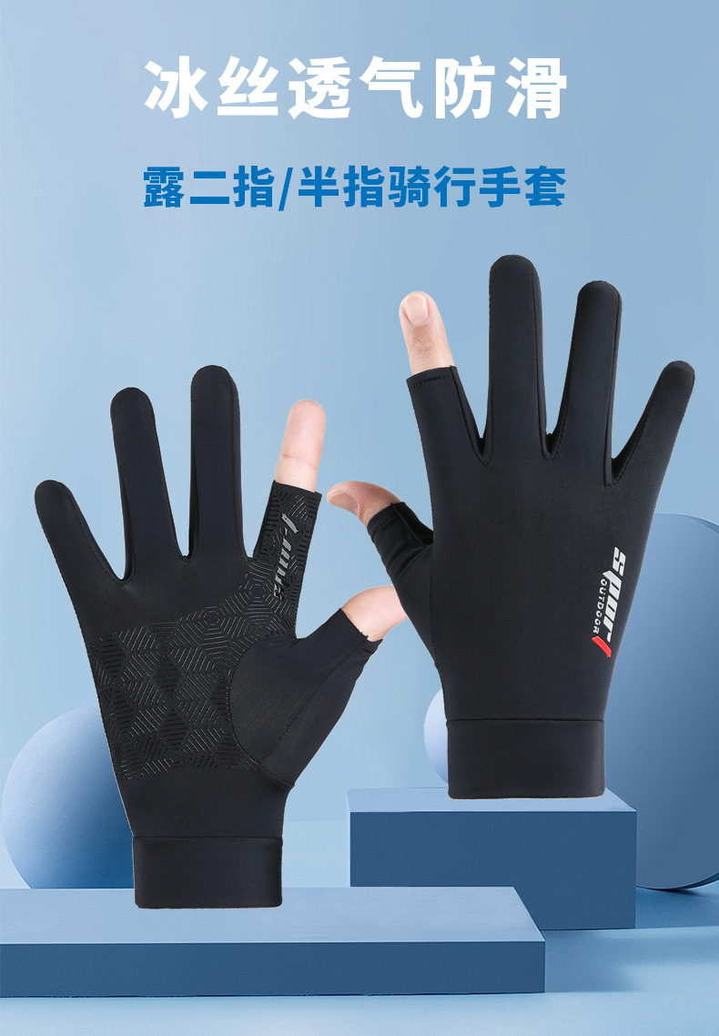 봄과 여름 선 스크린 아이스 실크 장갑 자외선 차단 손가락 누출 얇은 승마 스포츠 반 손가락 미끄럼 방지 운전 남녀 낚시