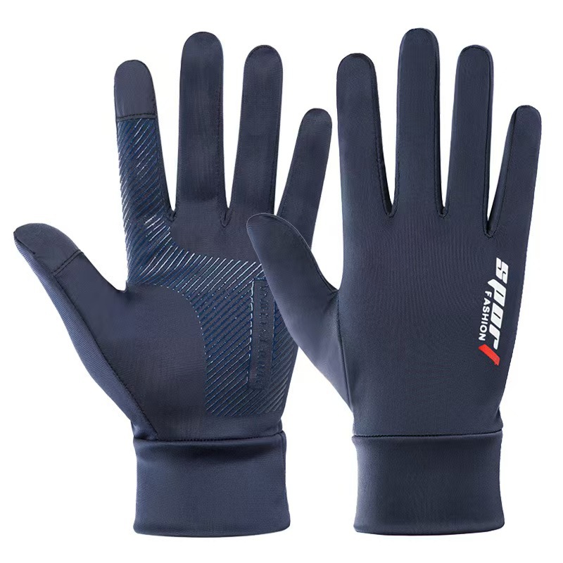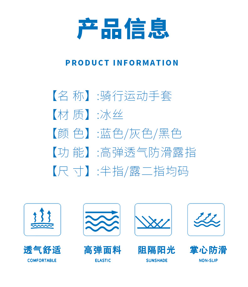 • 아이스 실크 남성용 글루 도트 문자 미끄럼 방지 - 하프 핑거 블루
