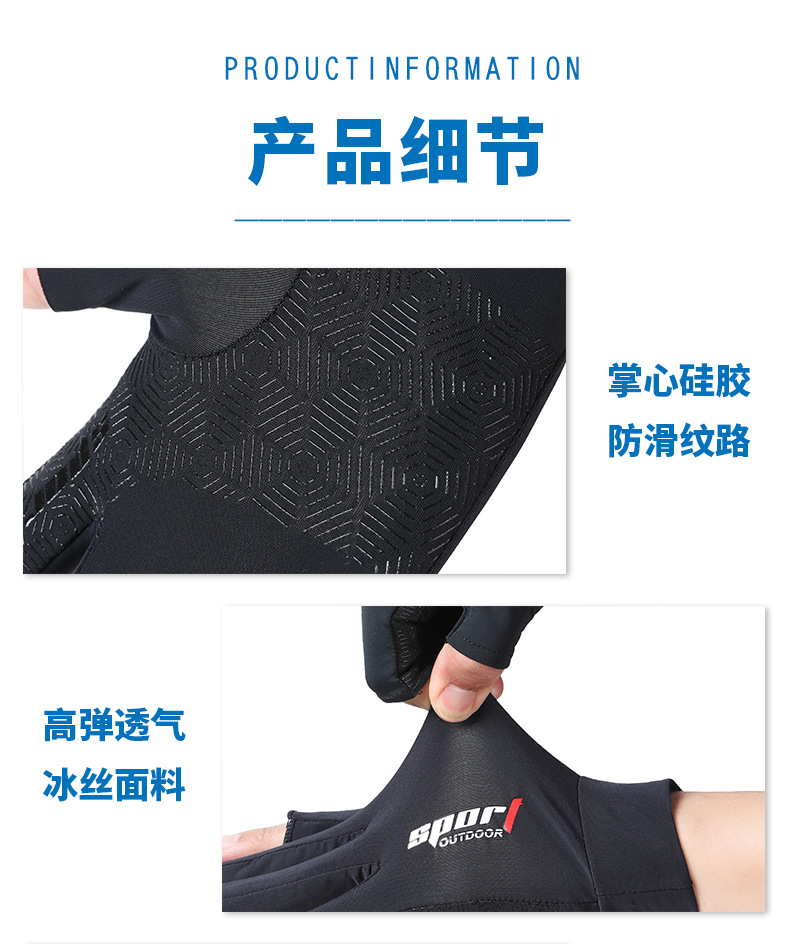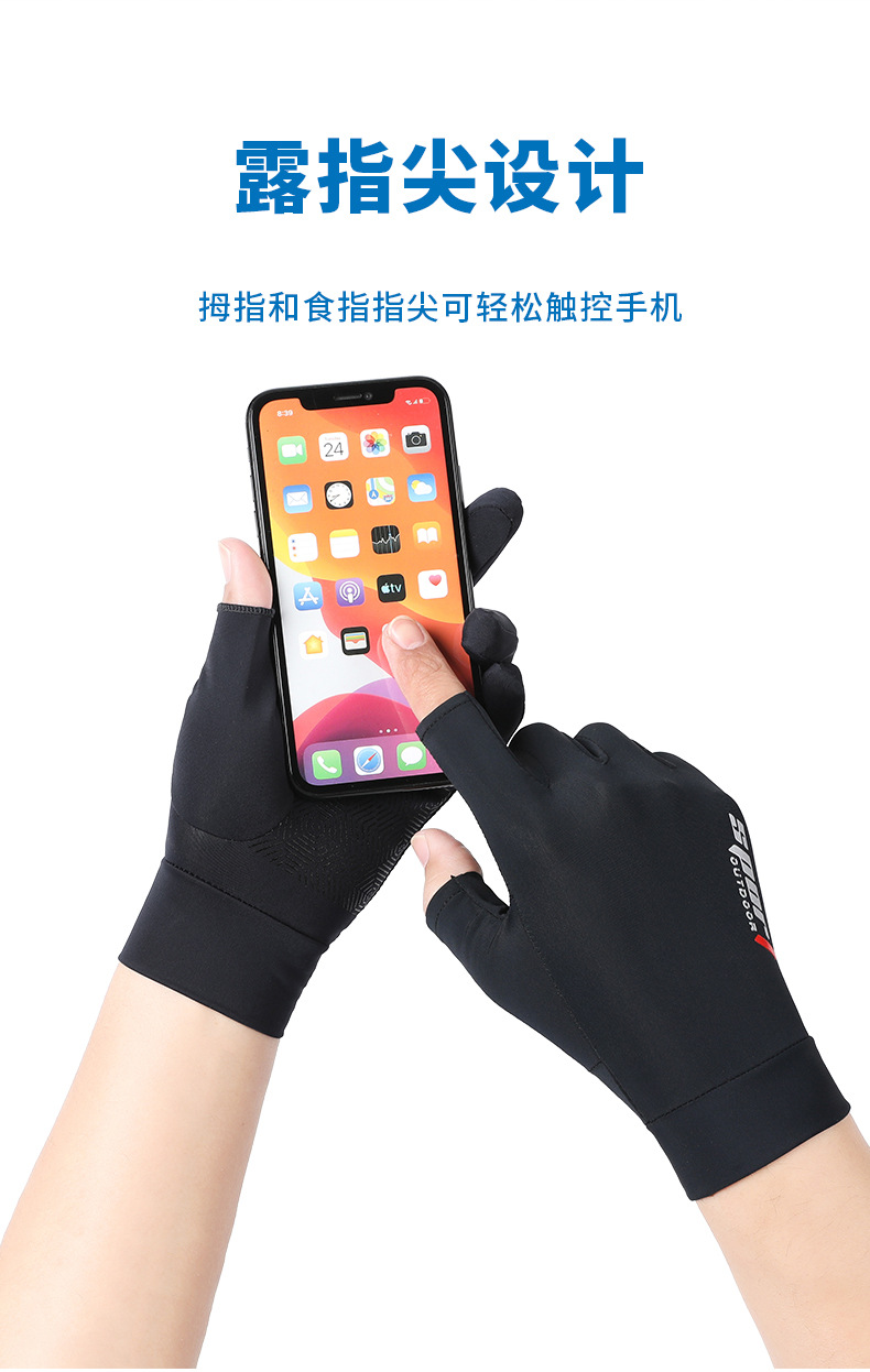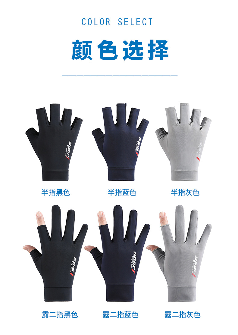 봄과 여름 선 스크린 아이스 실크 장갑 자외선 차단 손가락 누출 얇은 승마 스포츠 반 손가락 미끄럼 방지 운전 남녀 낚시스토어 가기