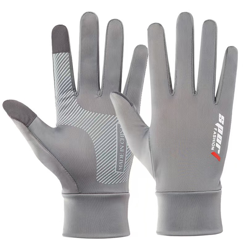 • 아이스 실크 남성용 글루 도트 문자 미끄럼 방지 - 긴 손가락 회색