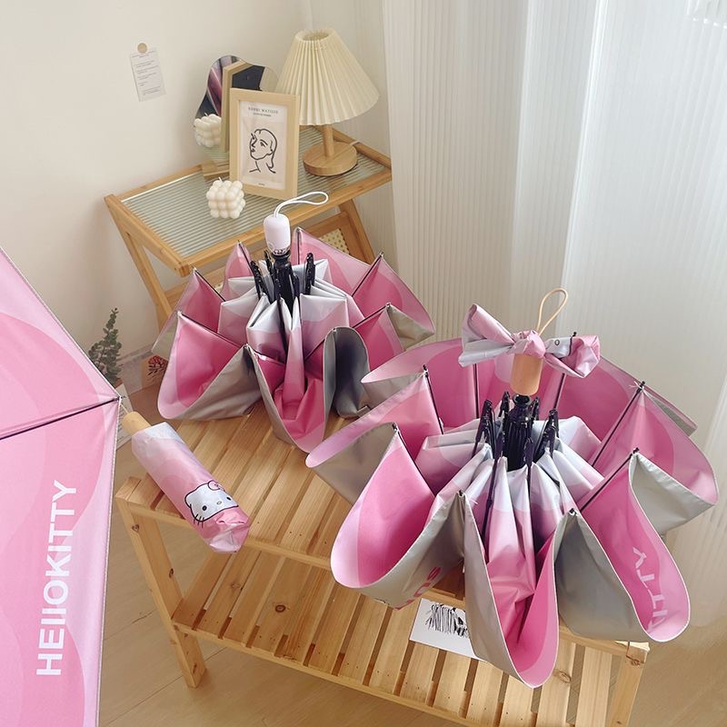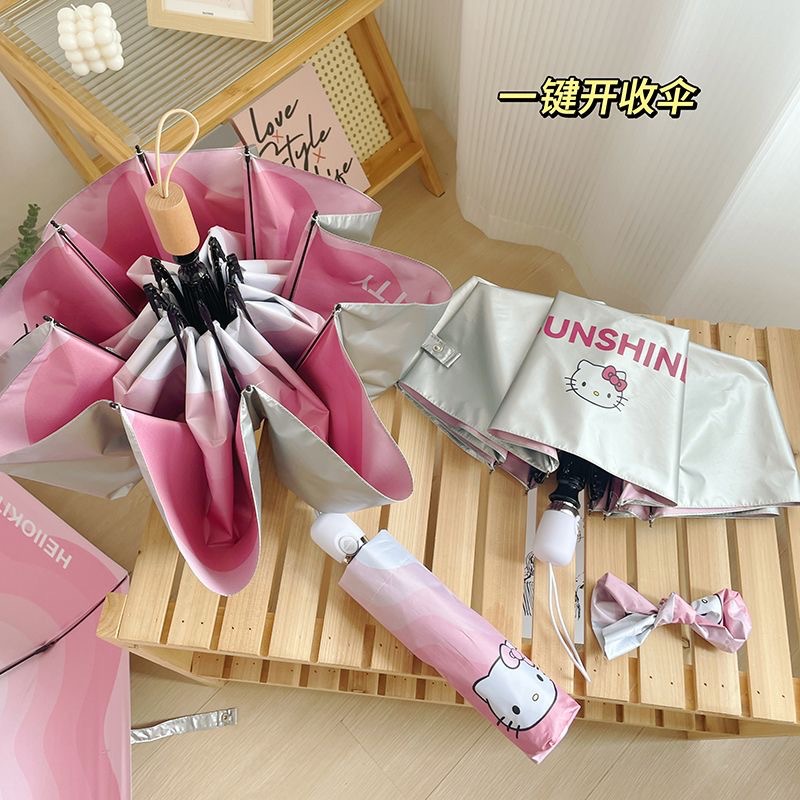 HelloKitty 파라솔, 비 또는 빛, 티타늄 실버 헬로 키티 태양 우산, 자외선 차단, 귀여운 만화 소녀
