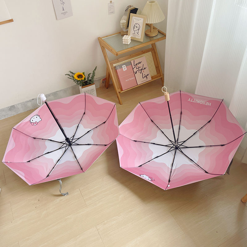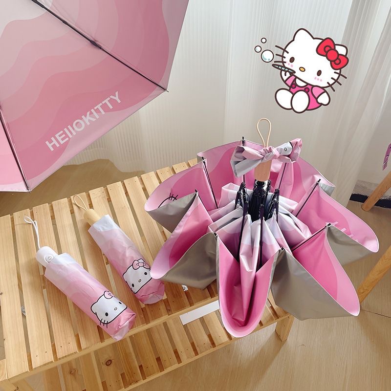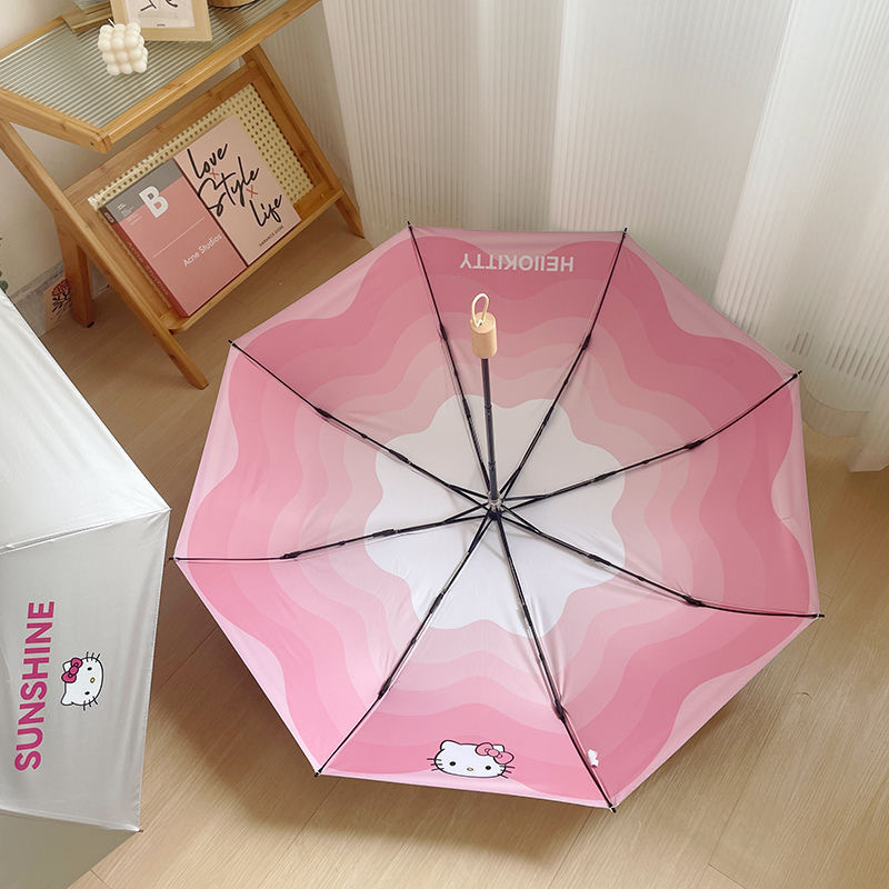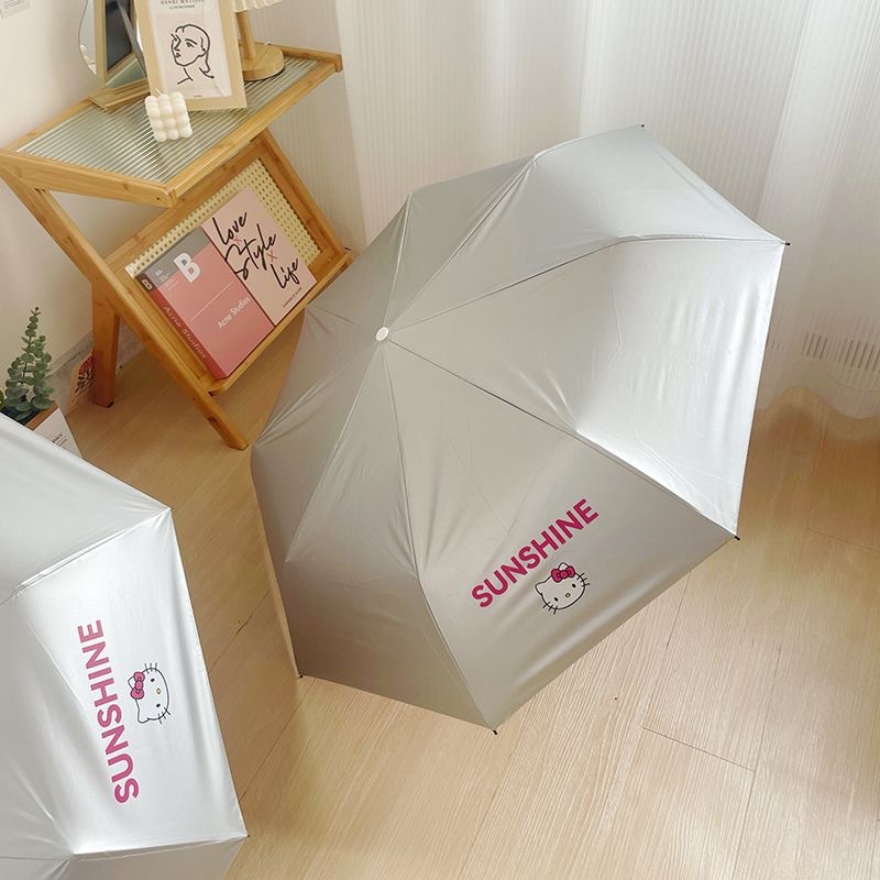 HelloKitty 파라솔, 비 또는 빛, 티타늄 실버 헬로 키티 태양 우산, 자외선 차단, 귀여운 만화 소녀스토어 가기
