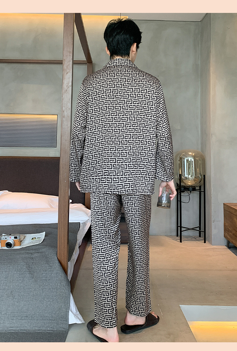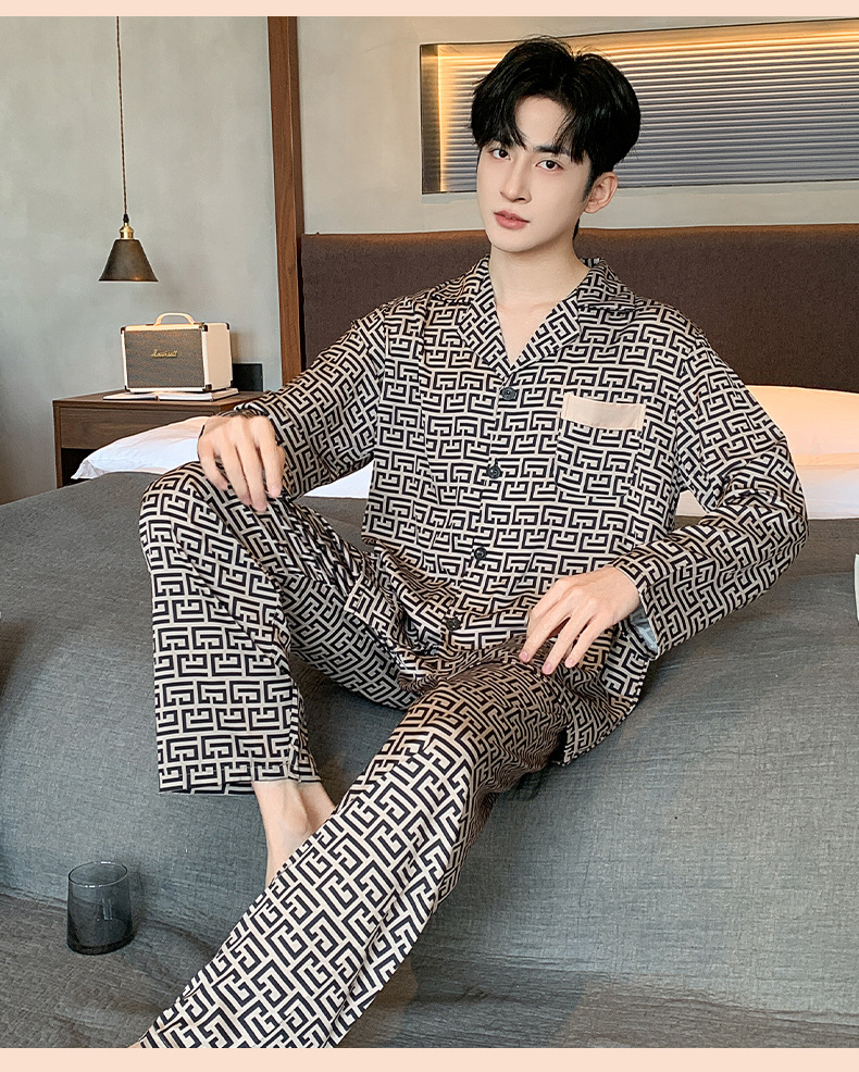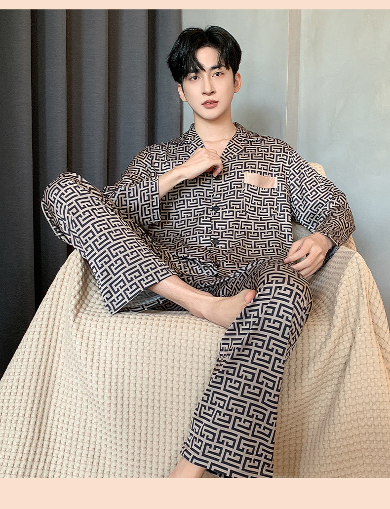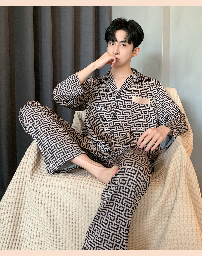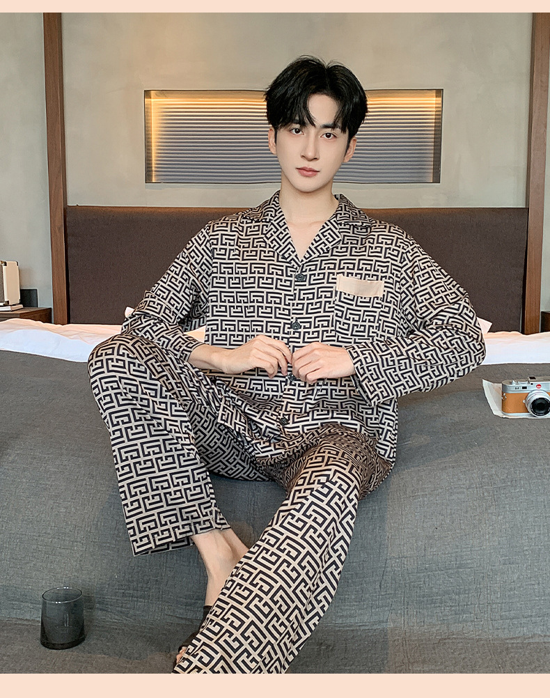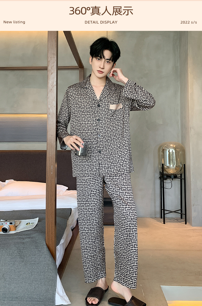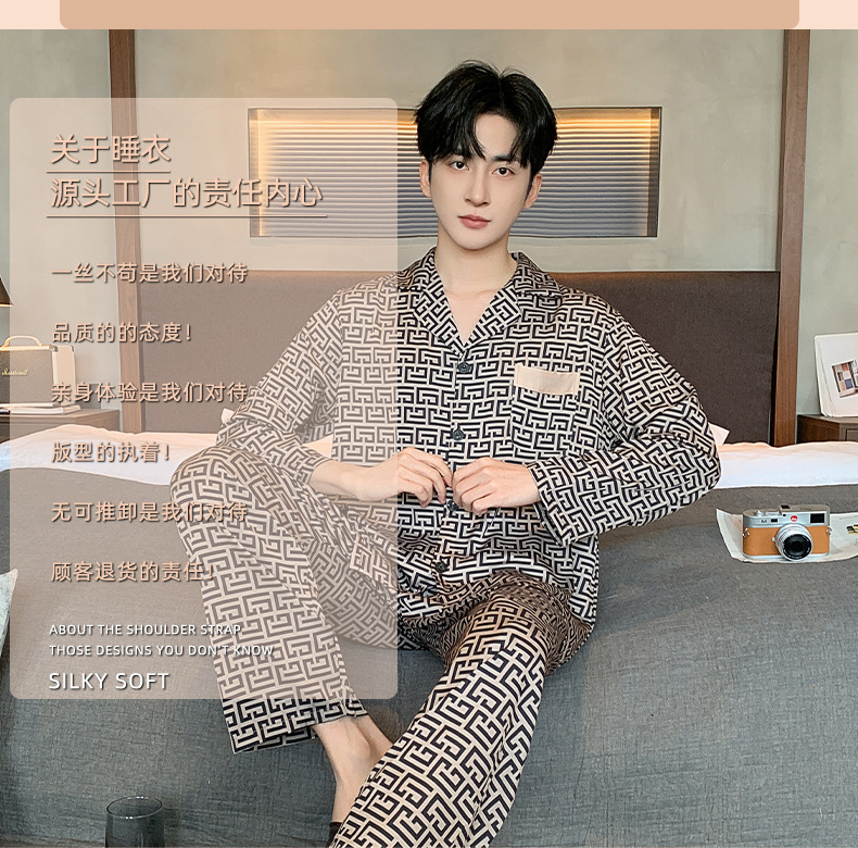 아이스 실크 잠옷 남성 플러스 대형 긴 소매 세트 2025 새로운 여름 봄과 가을 얇은 여름 홈 옷스토어 가기
