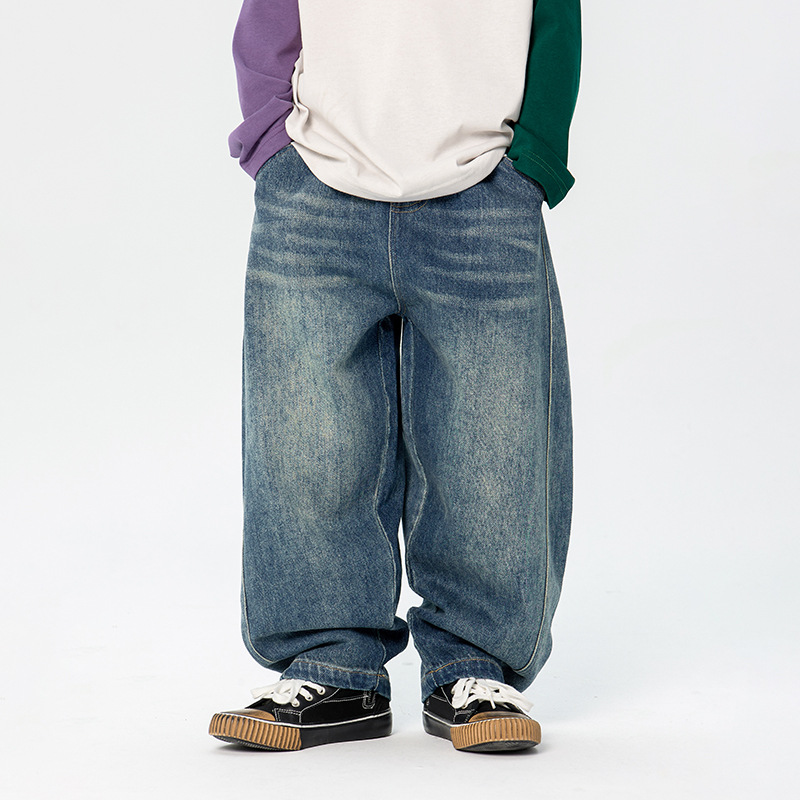 남학생 청바지 2025 봄 새 일본과 한국 어린이 스트레이트 캐주얼 바지 중소 어린이 패션 무 바지스토어 가기
