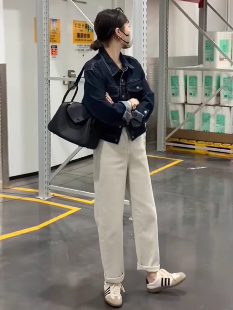 한국 스타일 레트로 다크 블루 데님 재킷 여성용 가을 겨울 2025 레이지 스타일 짧은 루즈핏 재킷 상의 A2951스토어 가기