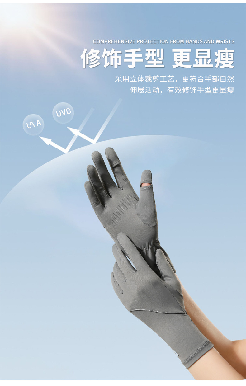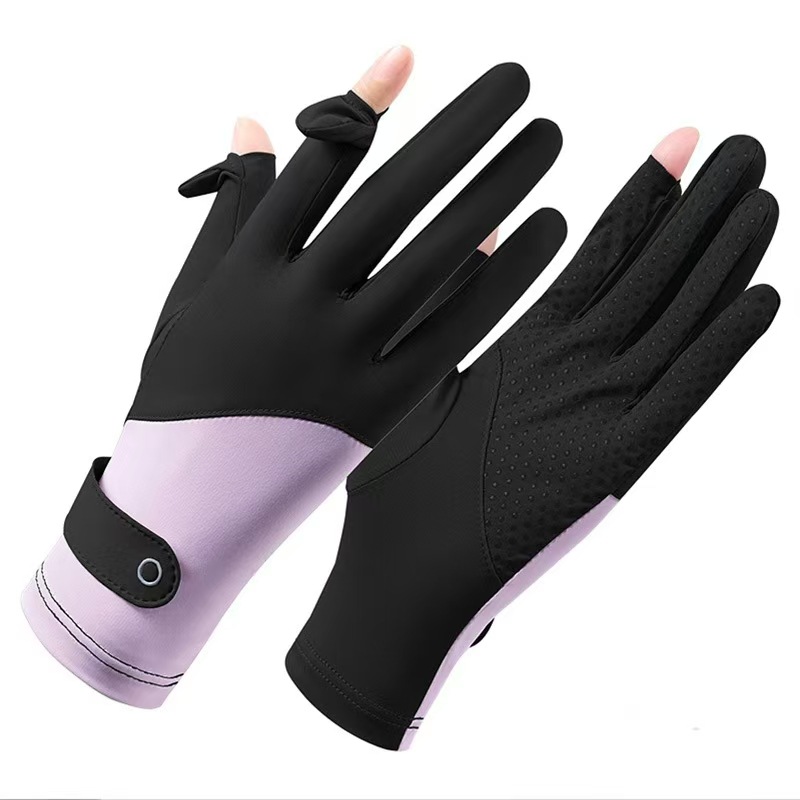 선 스크린 장갑 여성의 여름 승마 안티 자외선 통기성 얇은 운전 미끄럼 노출 손가락 터치 스크린 아이스 실크 장갑