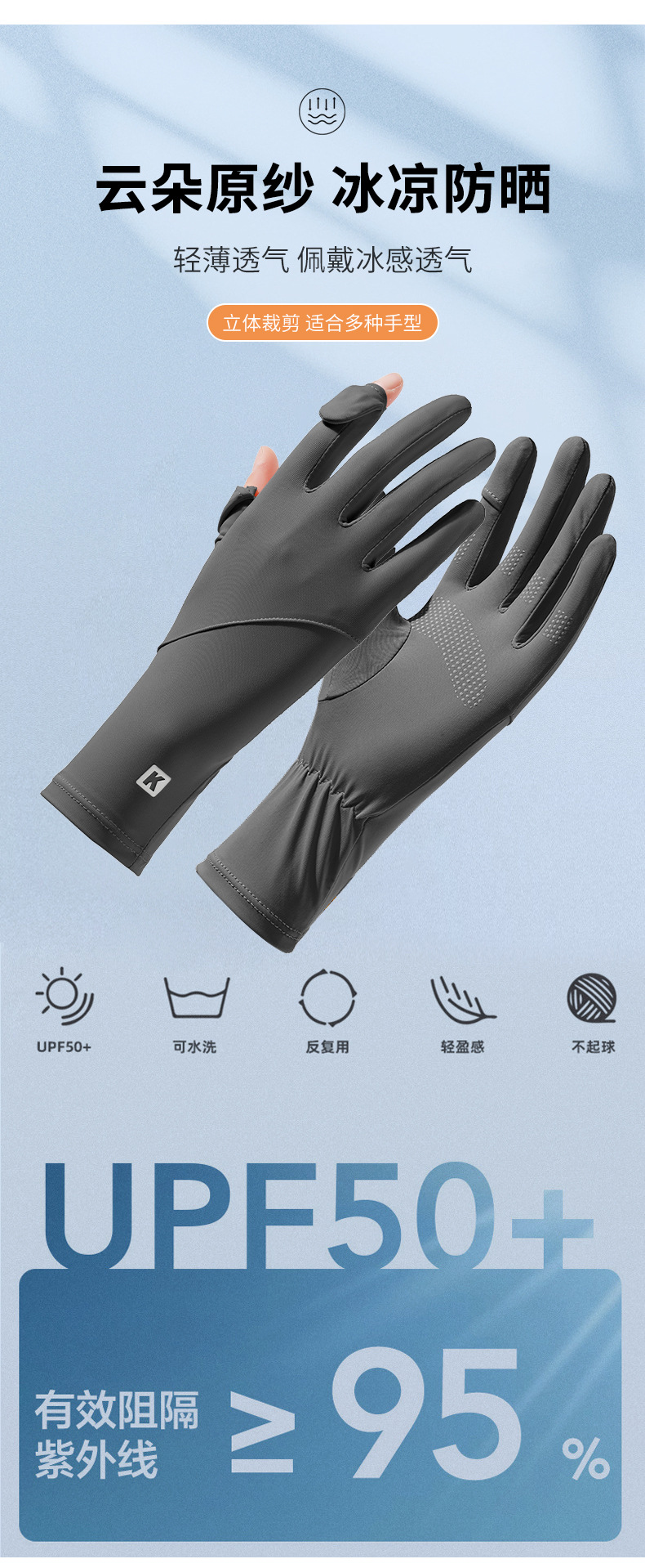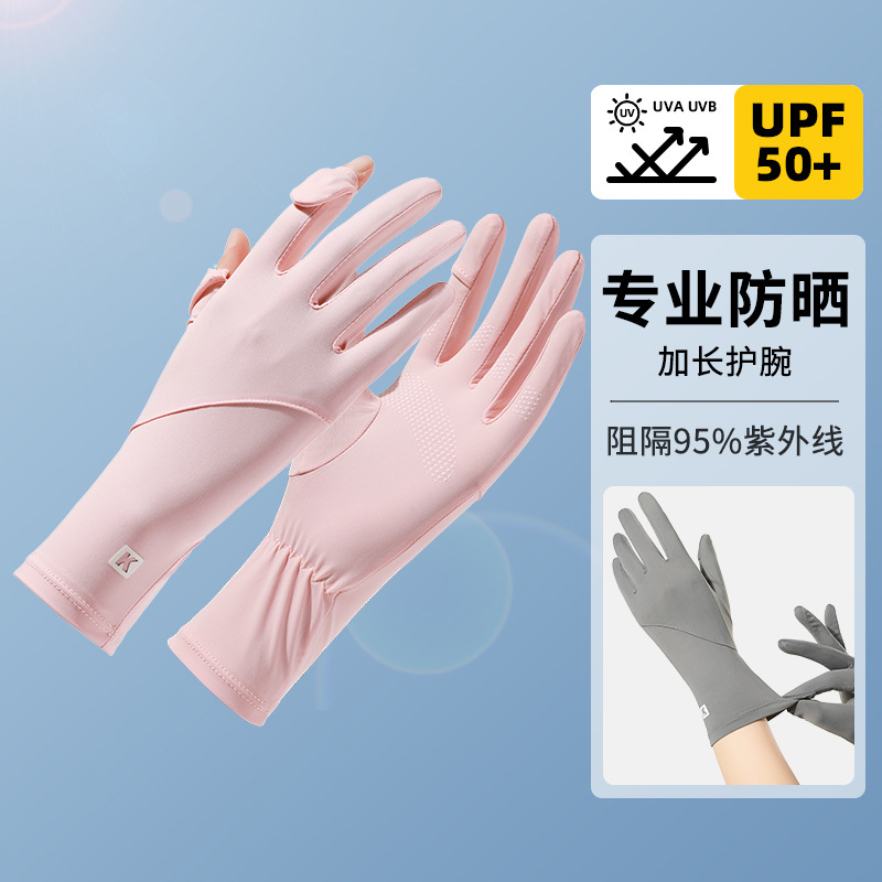 선 스크린 장갑 여성의 여름 승마 안티 자외선 통기성 얇은 운전 미끄럼 노출 손가락 터치 스크린 아이스 실크 장갑스토어 가기