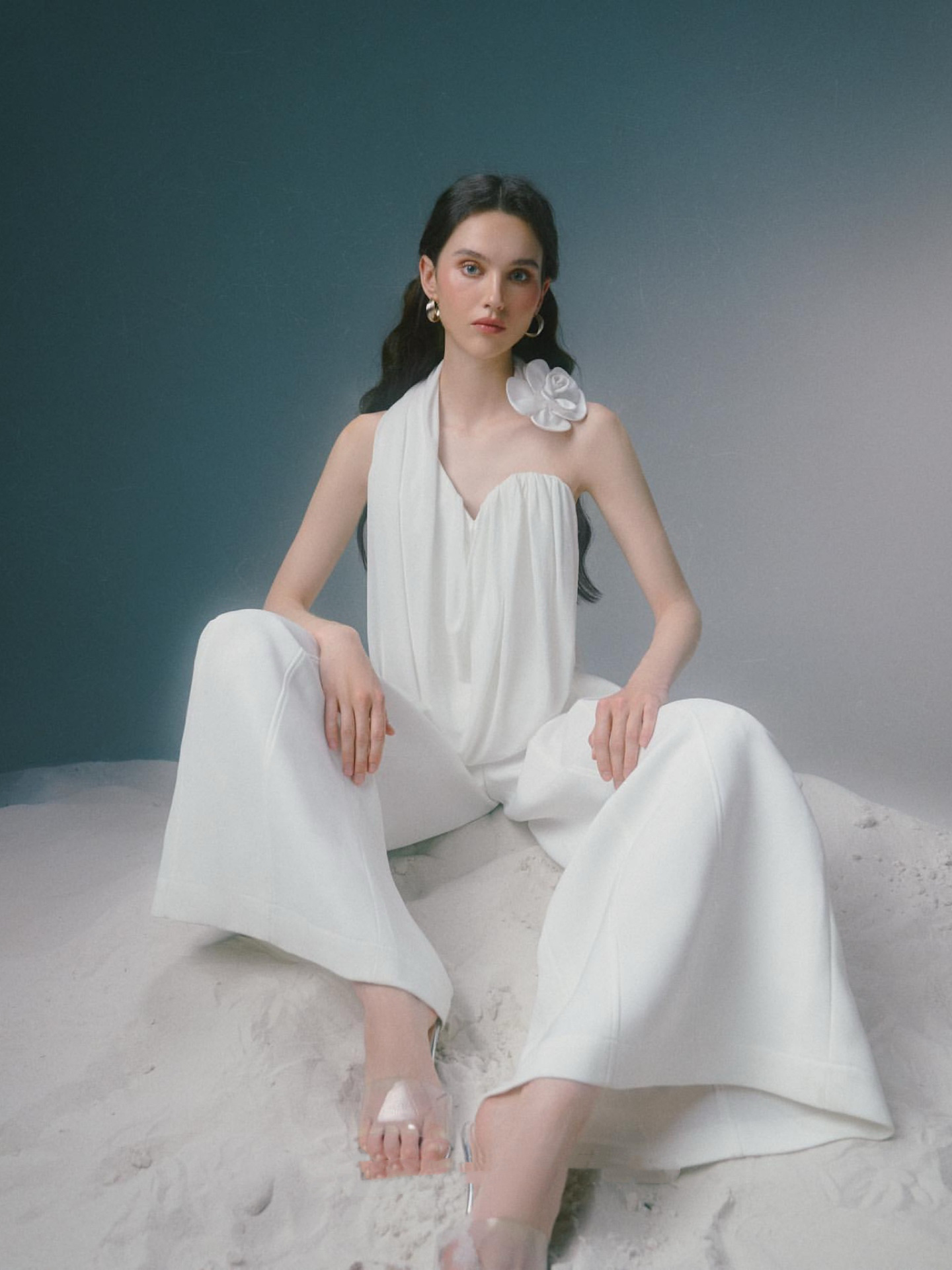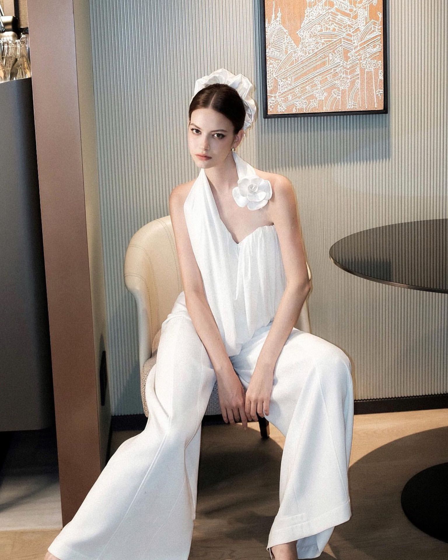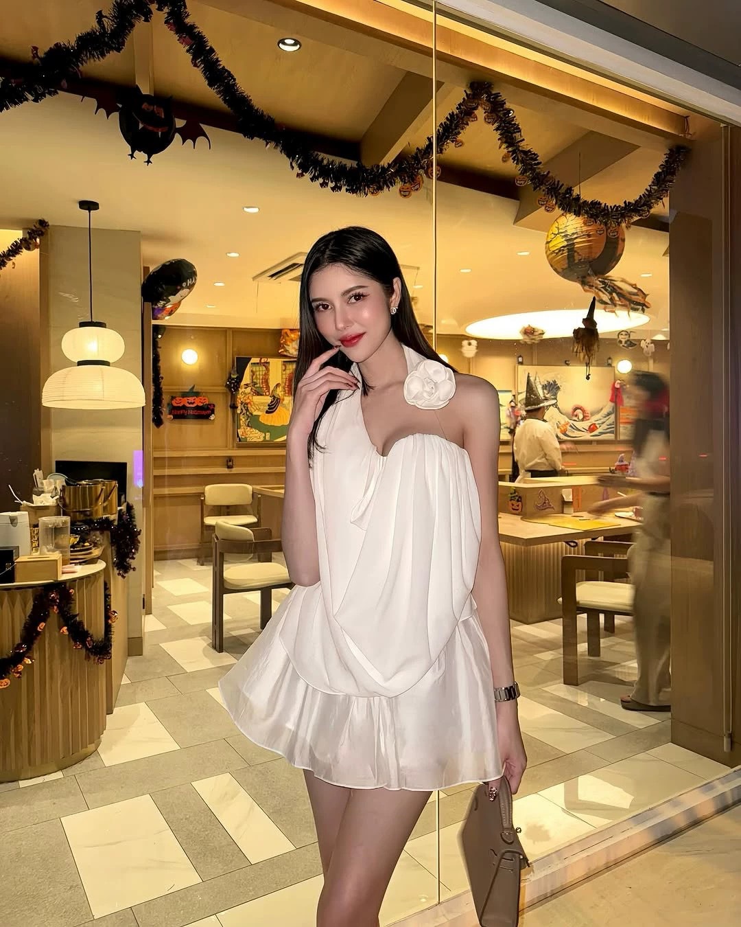 베트남 틈새 디자인 OI @ 2025 여름 새로운 경량 디자인 단일 어깨 주름 세트스토어 가기