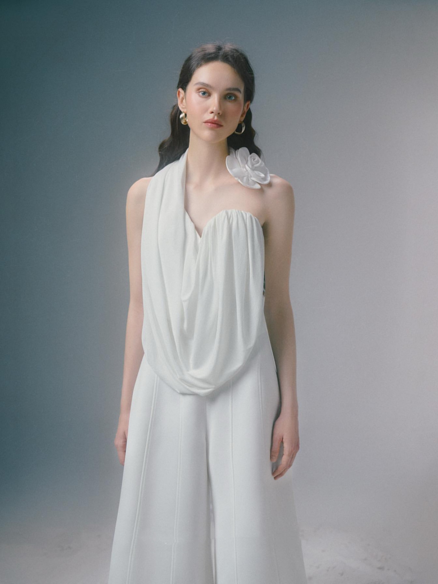 베트남 틈새 디자인 OI @ 2025 여름 새로운 경량 디자인 단일 어깨 주름 세트