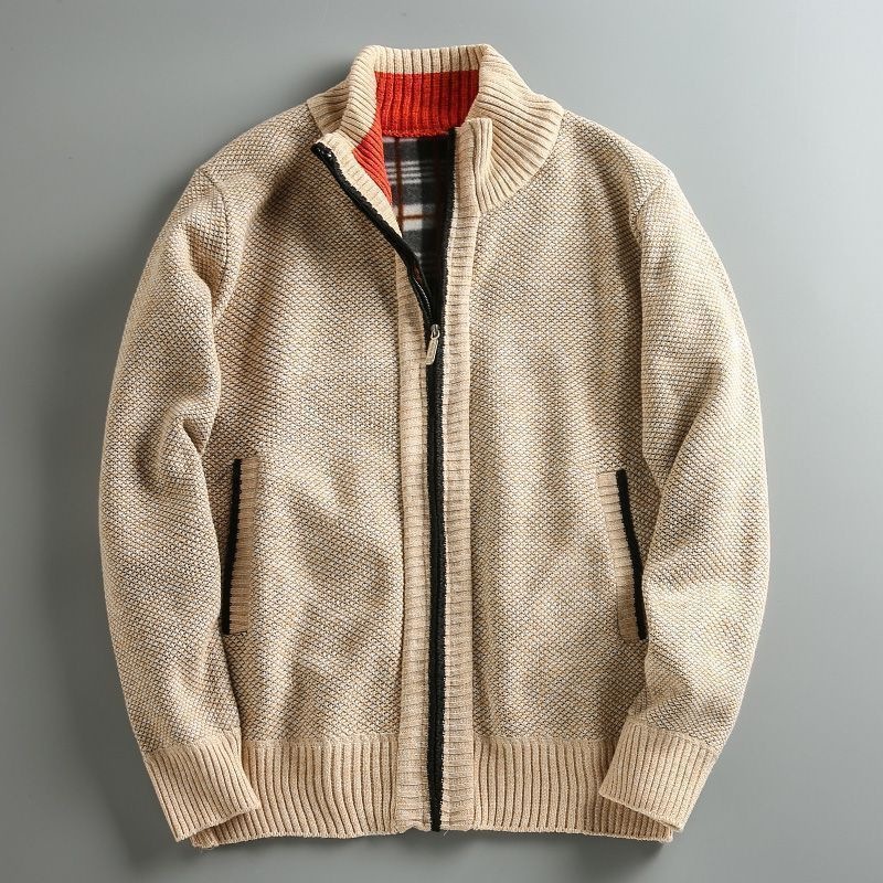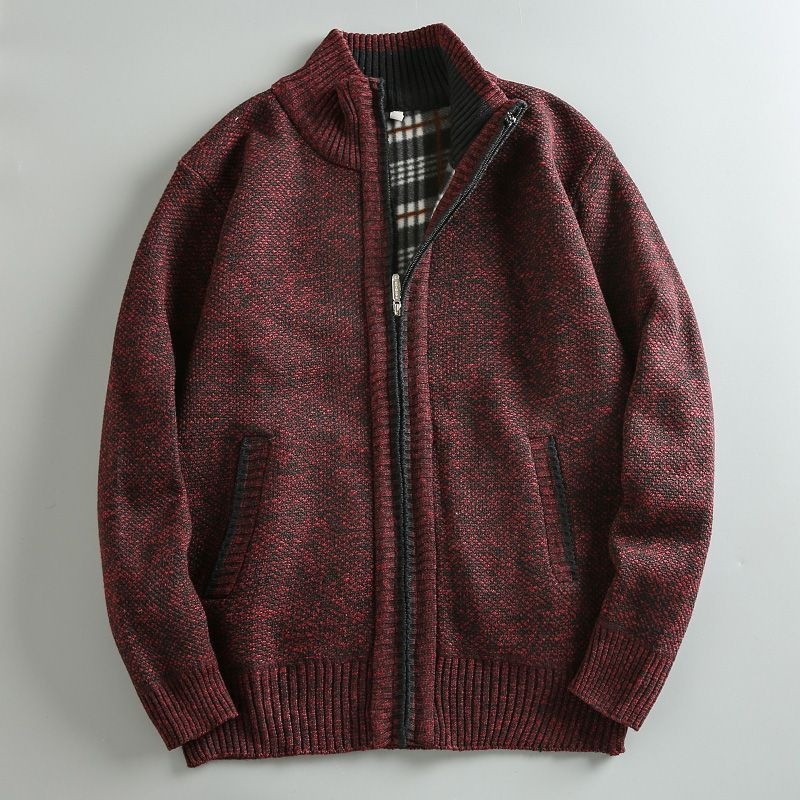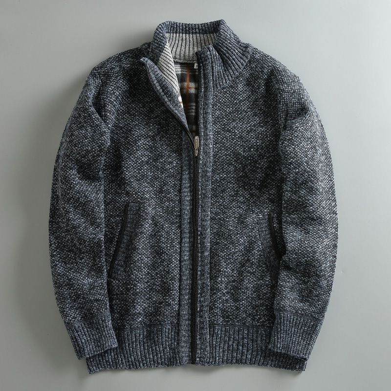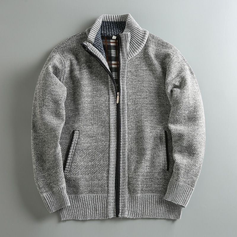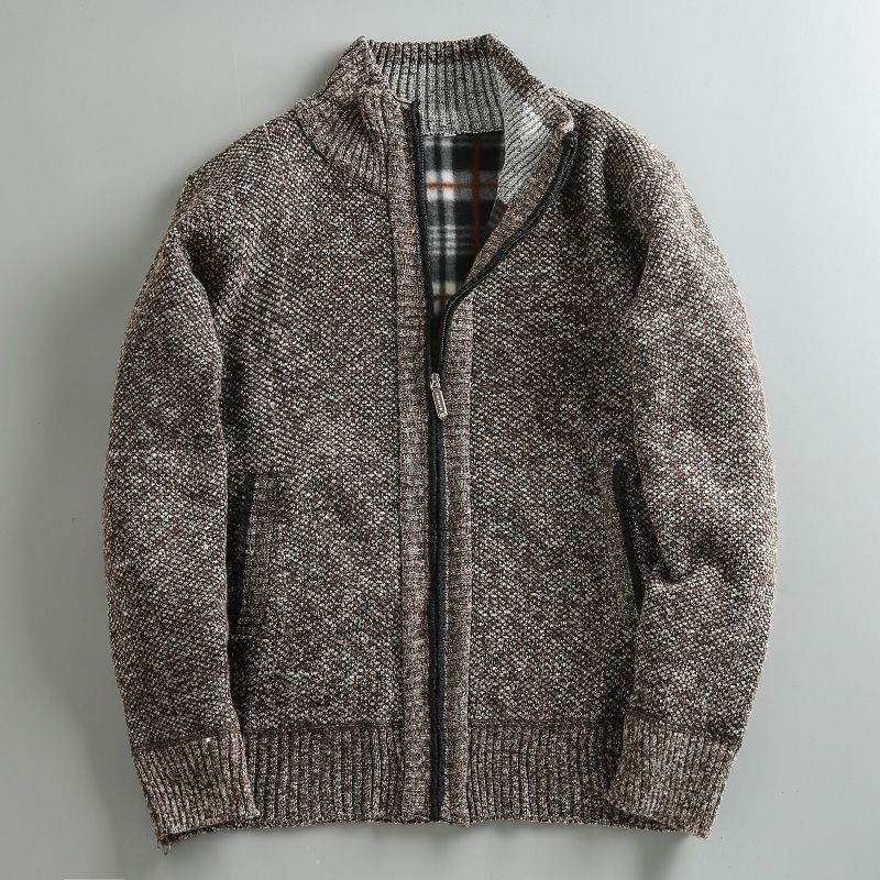 2023 가을과 겨울 새로운 남성 스탠드 칼라 니트 카디건 기모 두꺼운 따뜻한 캐주얼 조커 스웨터 재킷 코트