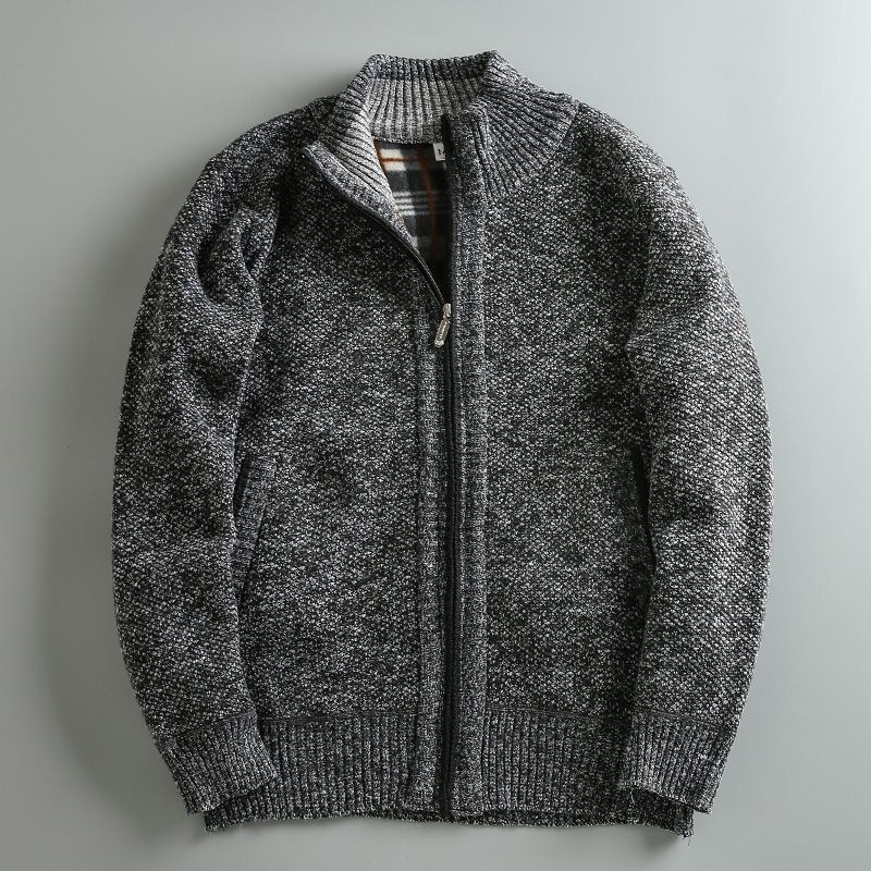 2023 가을과 겨울 새로운 남성 스탠드 칼라 니트 카디건 기모 두꺼운 따뜻한 캐주얼 조커 스웨터 재킷 코트스토어 가기
