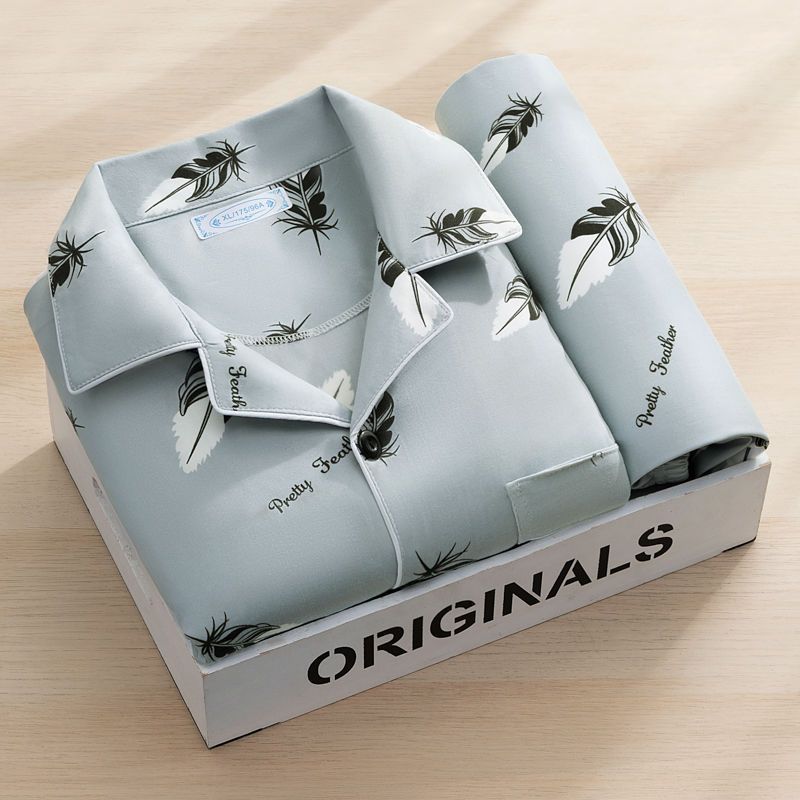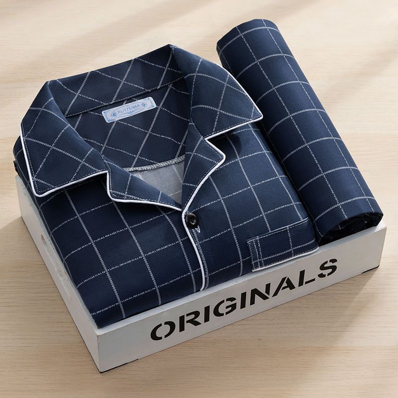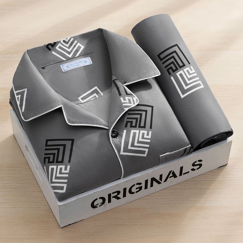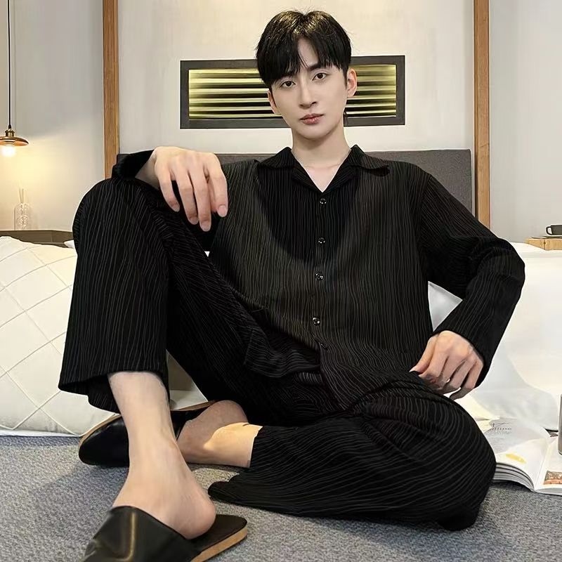 고급 잠옷 남자 긴 소매 2023 새로운 남성 캐주얼 중년 청소년 여름 홈 의류 세트스토어 가기