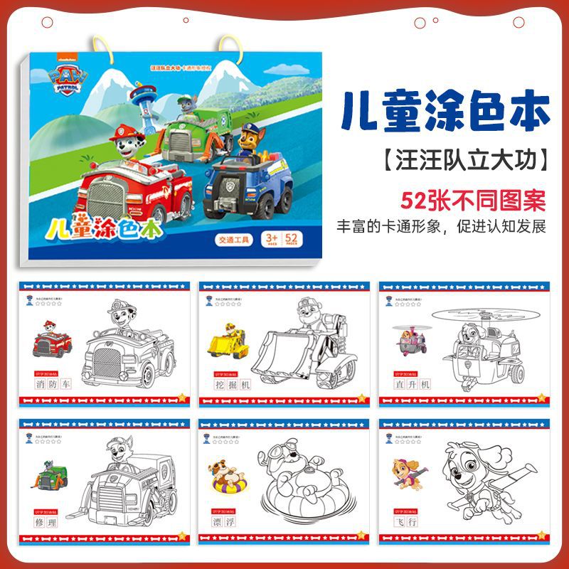 • Paw Paw Team 색칠하기 책 - 반복되지 않는 52페이지 [A4 크기/두껍고 부드러운 종이]