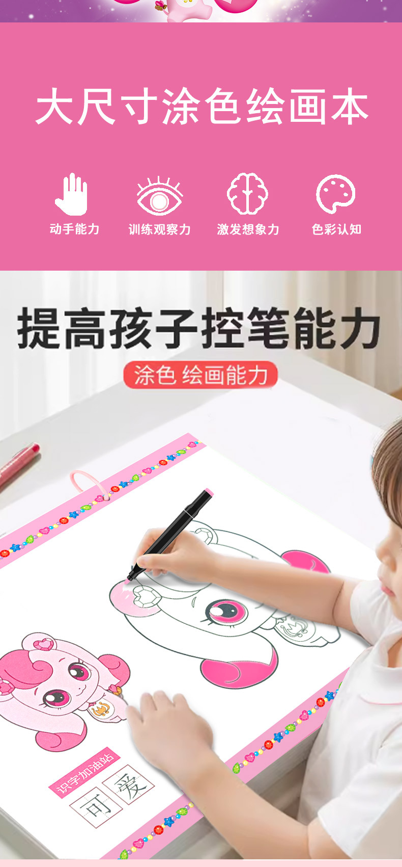 멋진 귀여운 어린이 색칠 대형 그림책 유치원 아기 공주 그림 색칠 소녀 낙서 계몽 그림스토어 가기