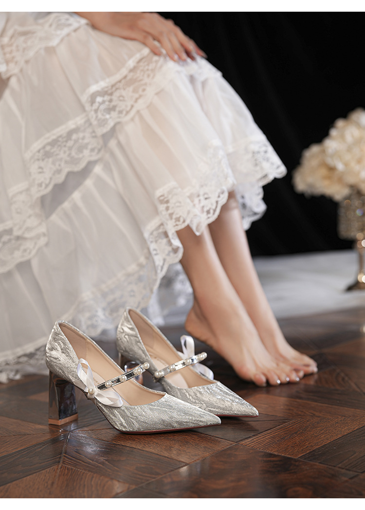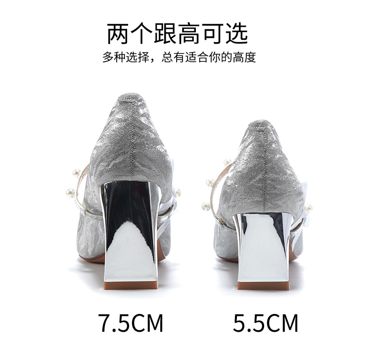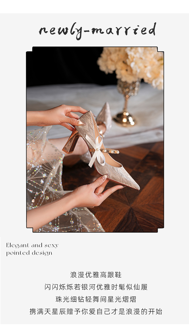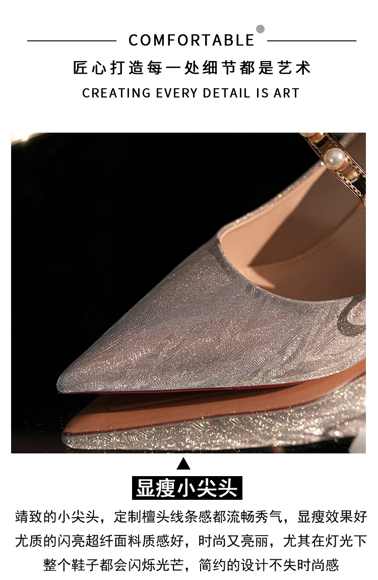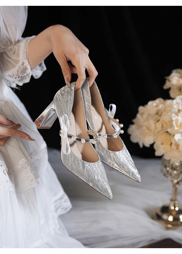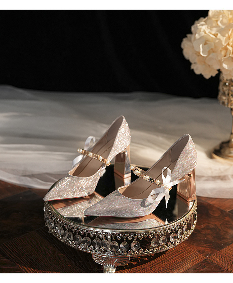 7777-2 여성용 호피무늬 하이힐 2025 봄 신작 뾰족한 굽 진주 원 스트랩 메인 거즈 Xiuhe 웨딩 슈즈스토어 가기