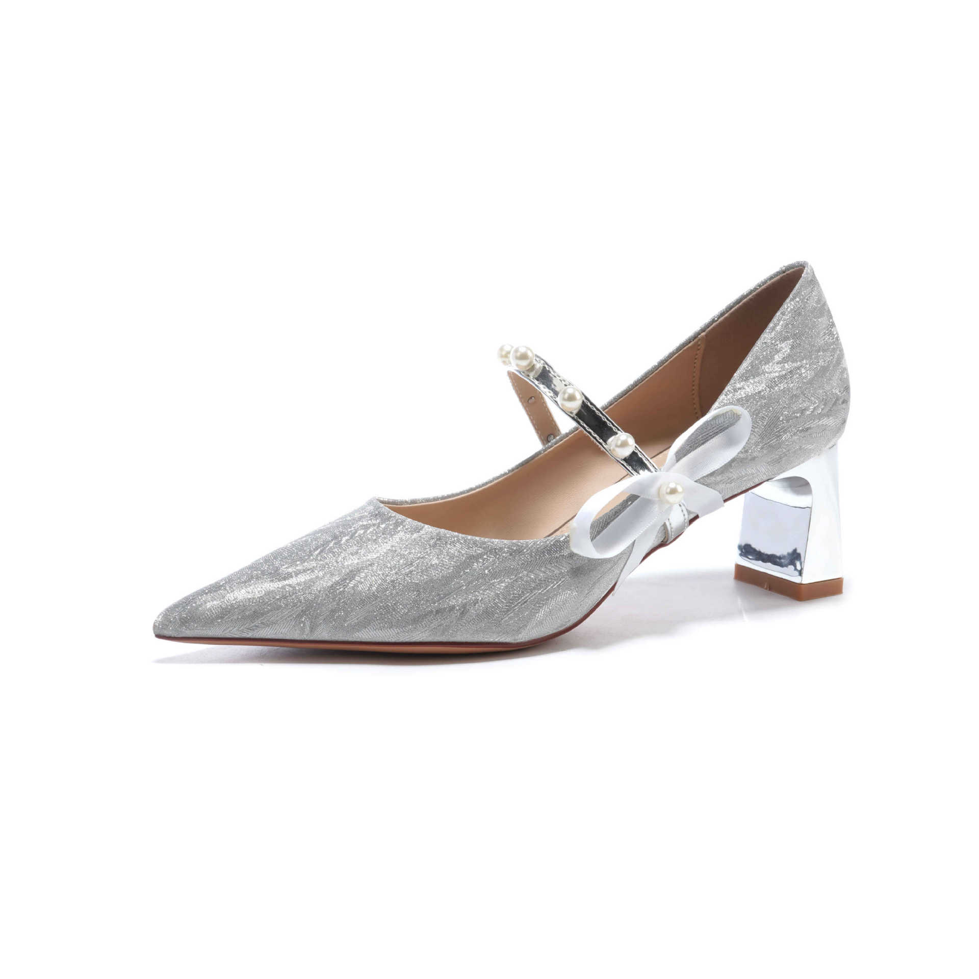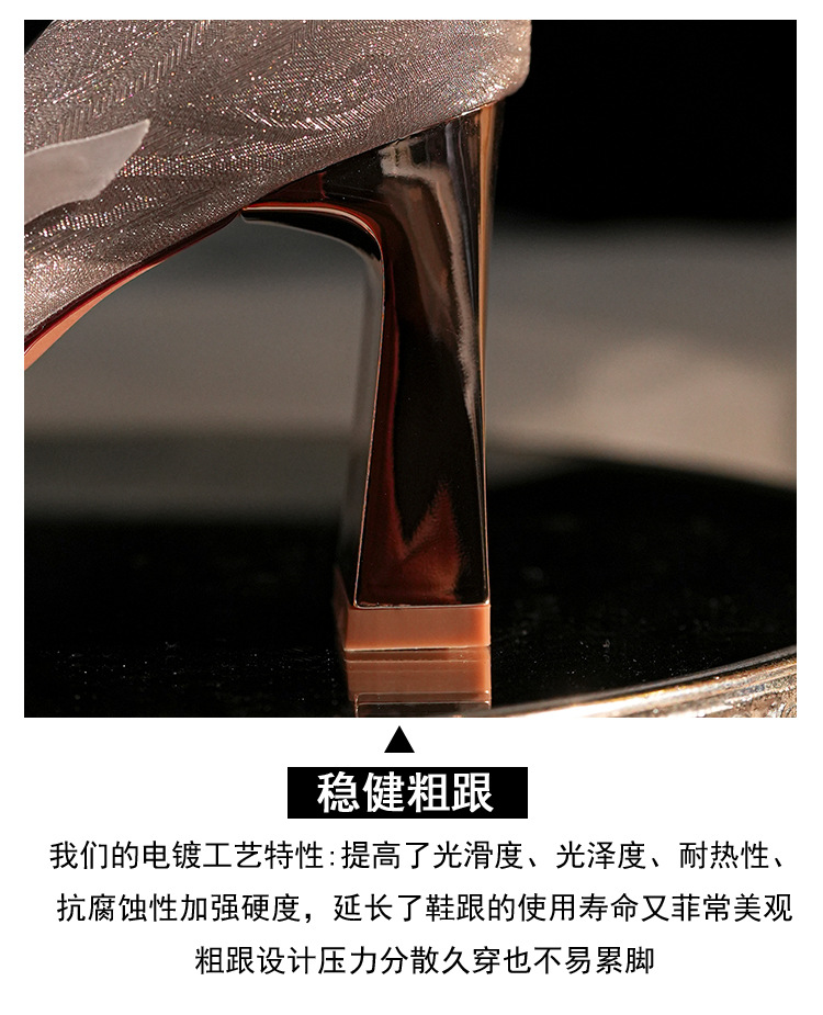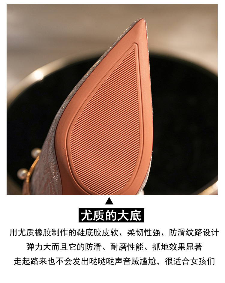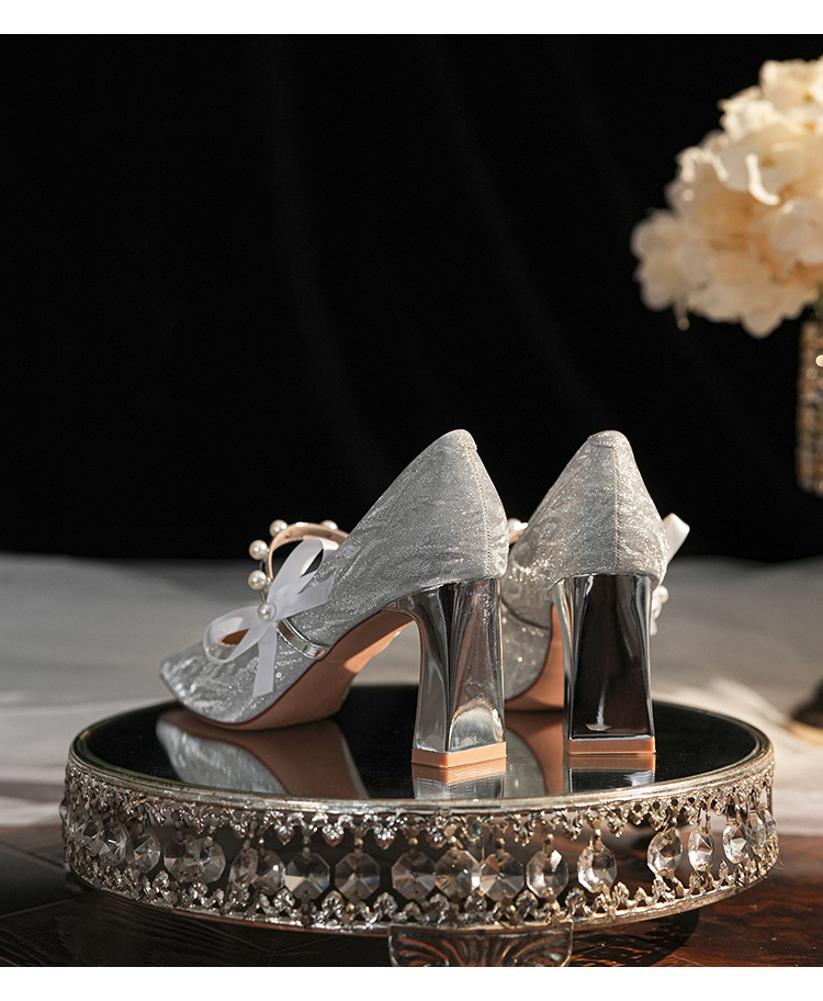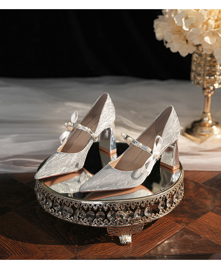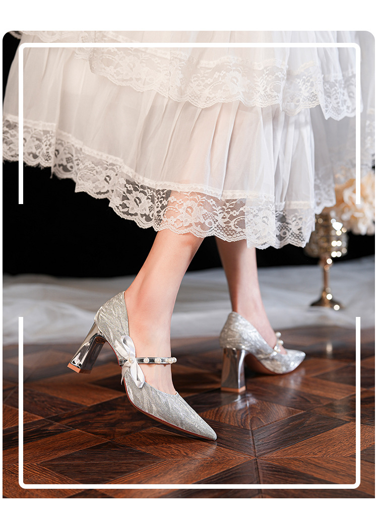 7777-2 여성용 호피무늬 하이힐 2025 봄 신작 뾰족한 굽 진주 원 스트랩 메인 거즈 Xiuhe 웨딩 슈즈스토어 가기