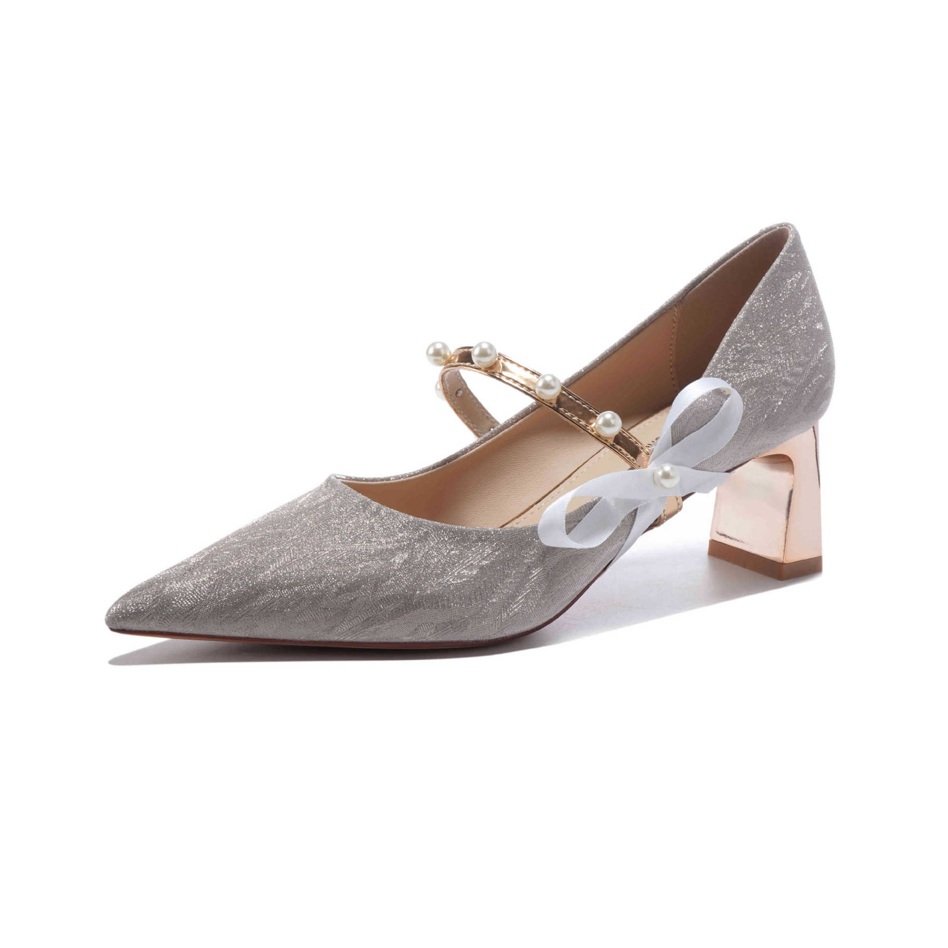 7777-2 여성용 호피무늬 하이힐 2025 봄 신작 뾰족한 굽 진주 원 스트랩 메인 거즈 Xiuhe 웨딩 슈즈