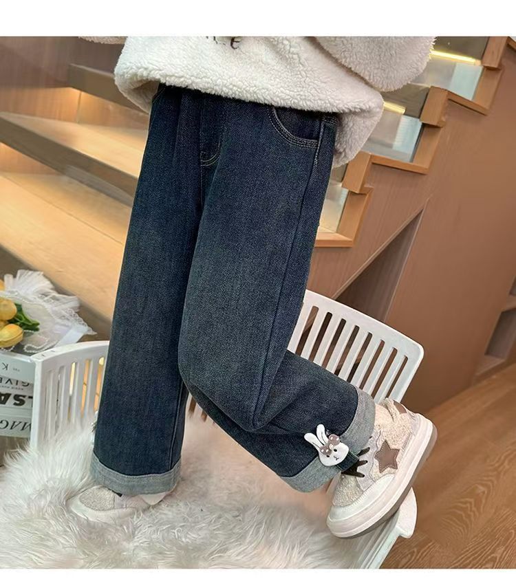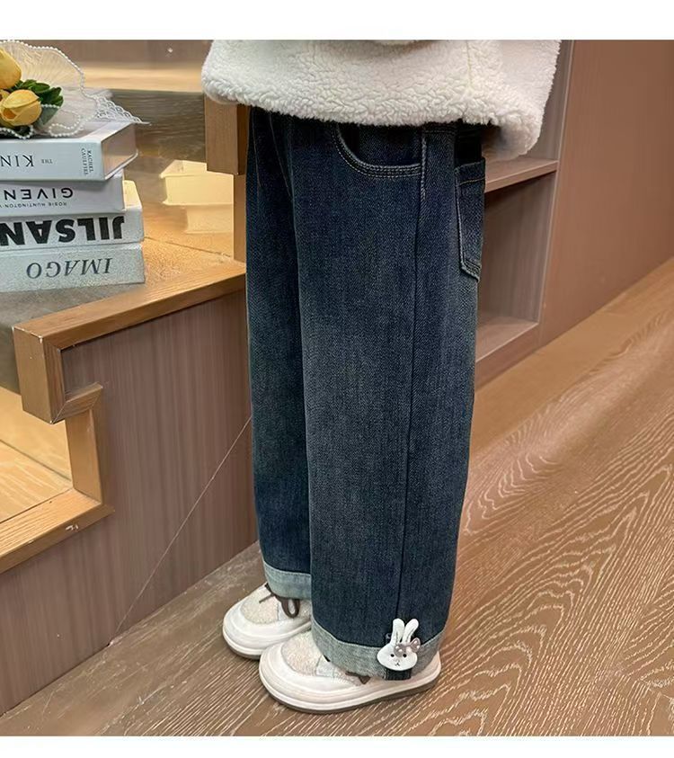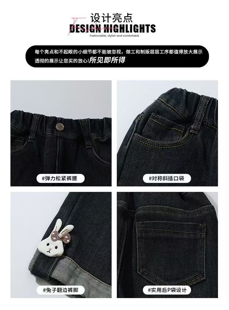 여아용 데님 팬츠 25 봄 유행 어린이 공주 스타일 아기 귀여운 어린이용 일자 바지 얇은 만화 디자인스토어 가기