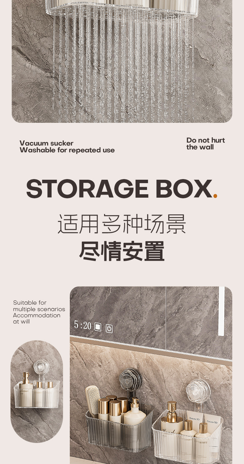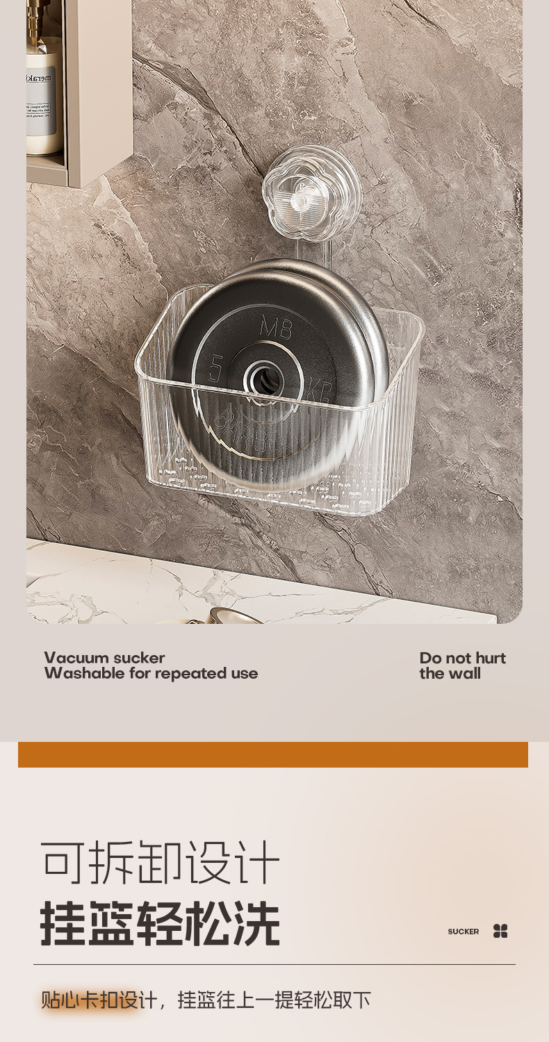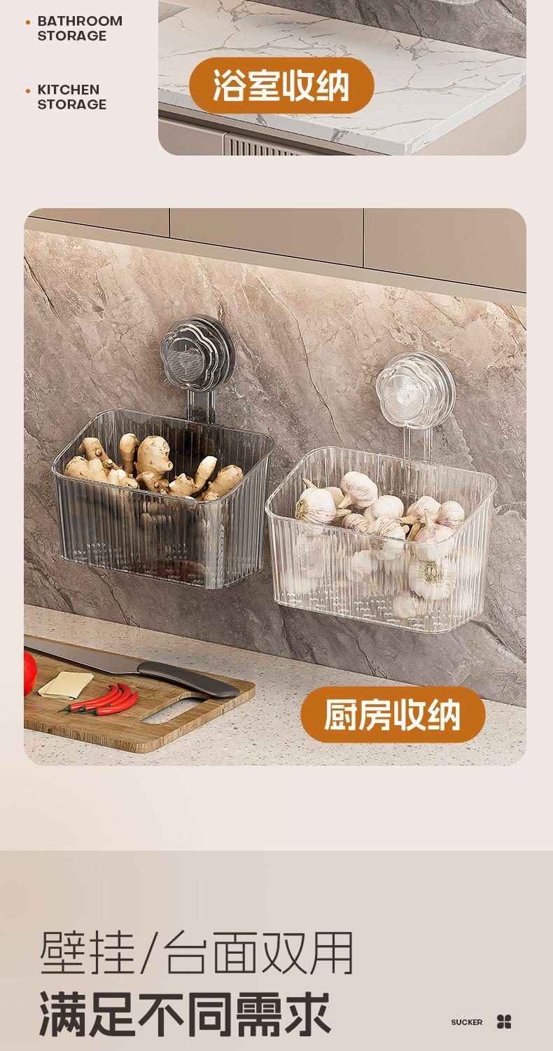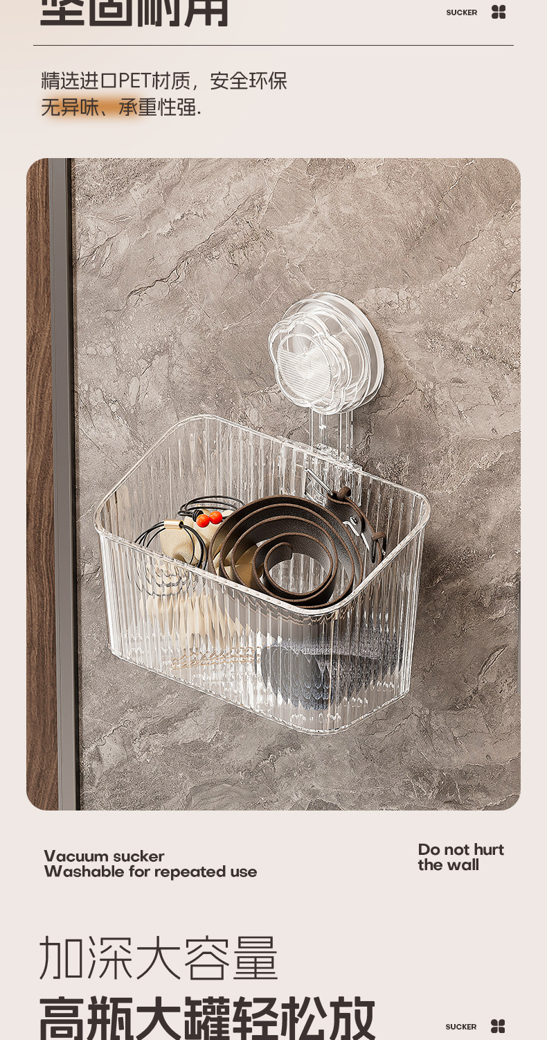 • 투명한 흰색 흡입 컵 벽걸이형 보관함