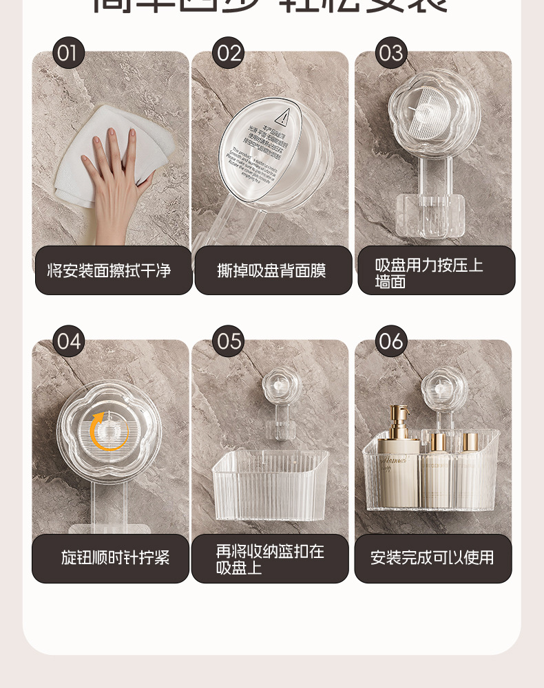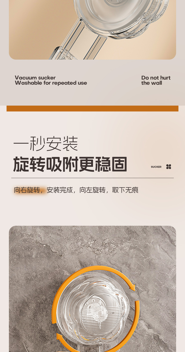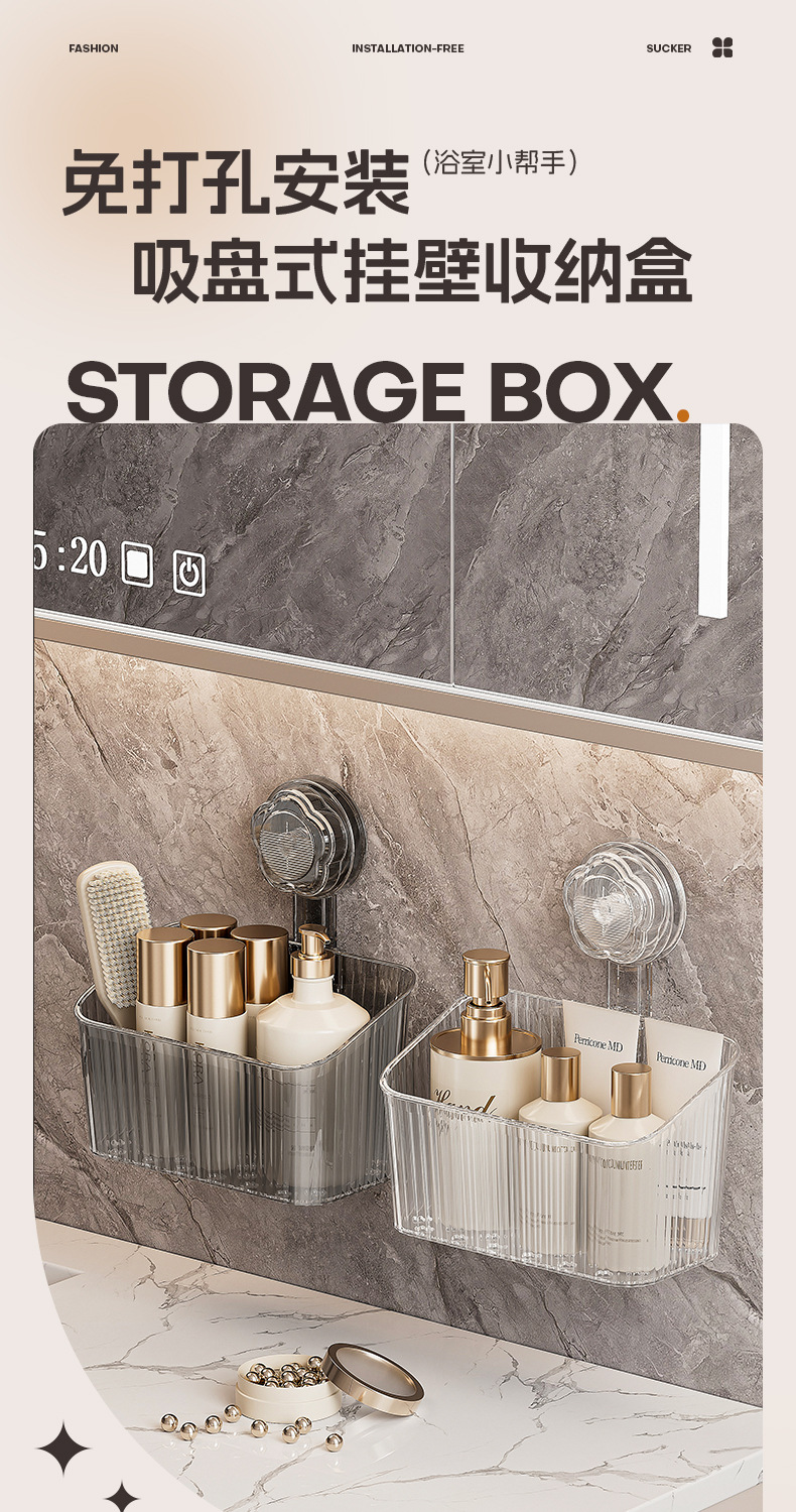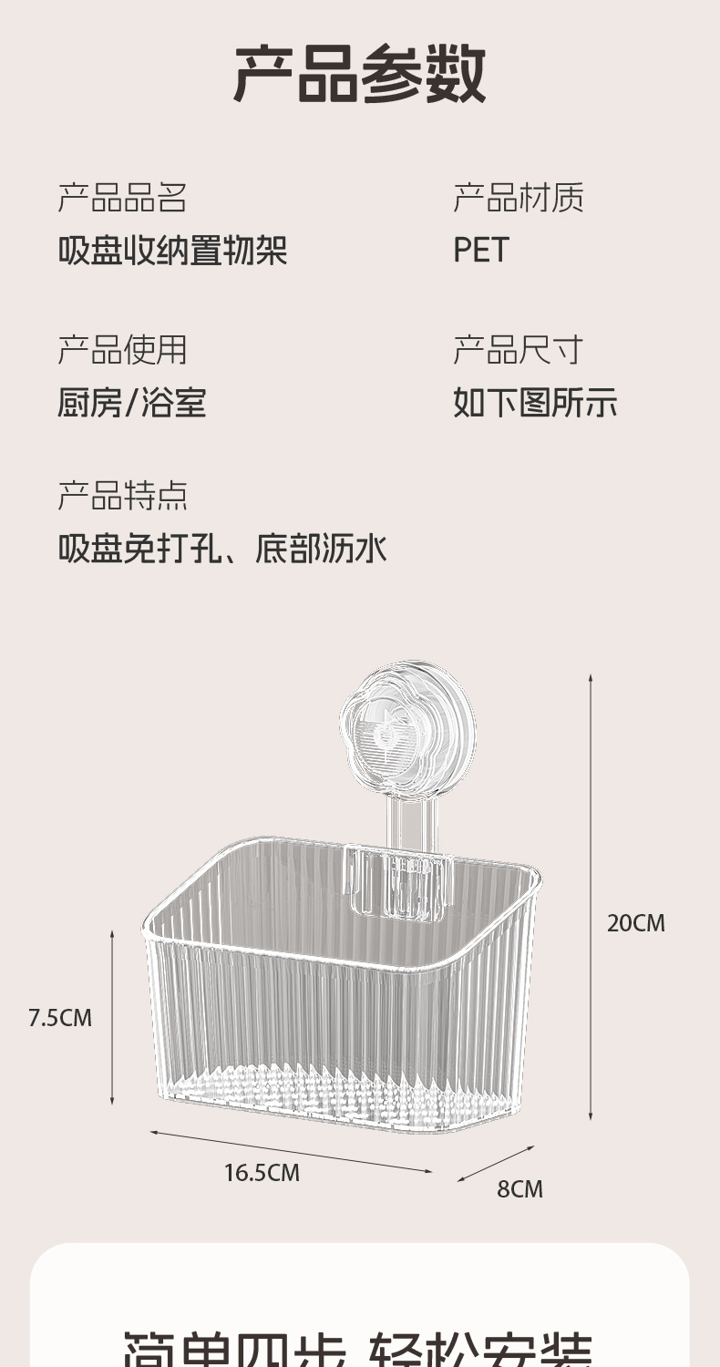 • 투명한 흰색 흡입 컵 벽걸이형 보관함