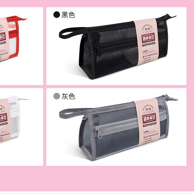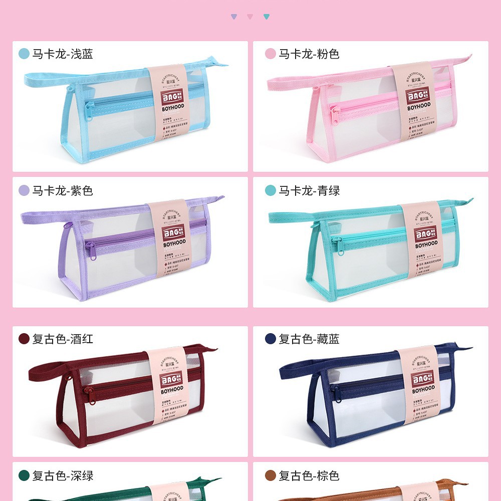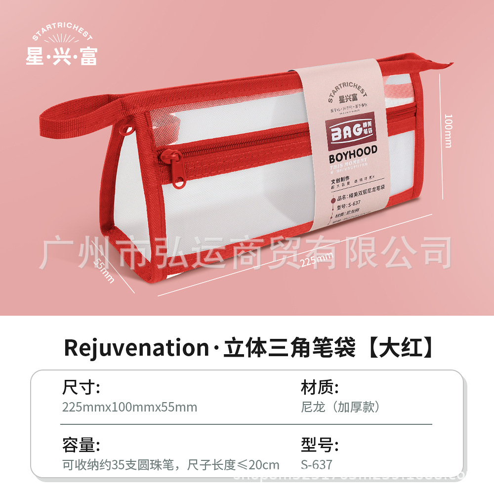 Xingxingfu 삼각형 입체 더블 레이어 투명 메쉬 연필 가방 시험 특수 대용량 연필 케이스 소녀 연필 가방 한국어스토어 가기