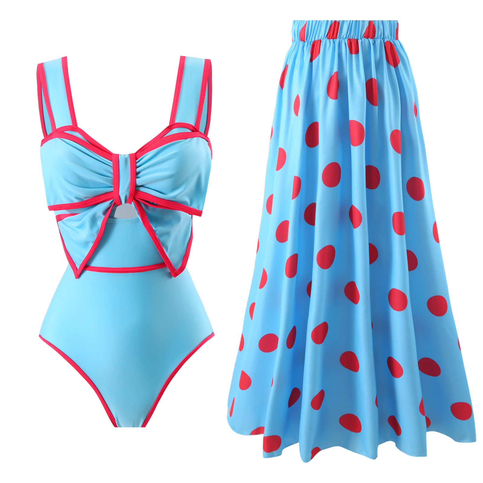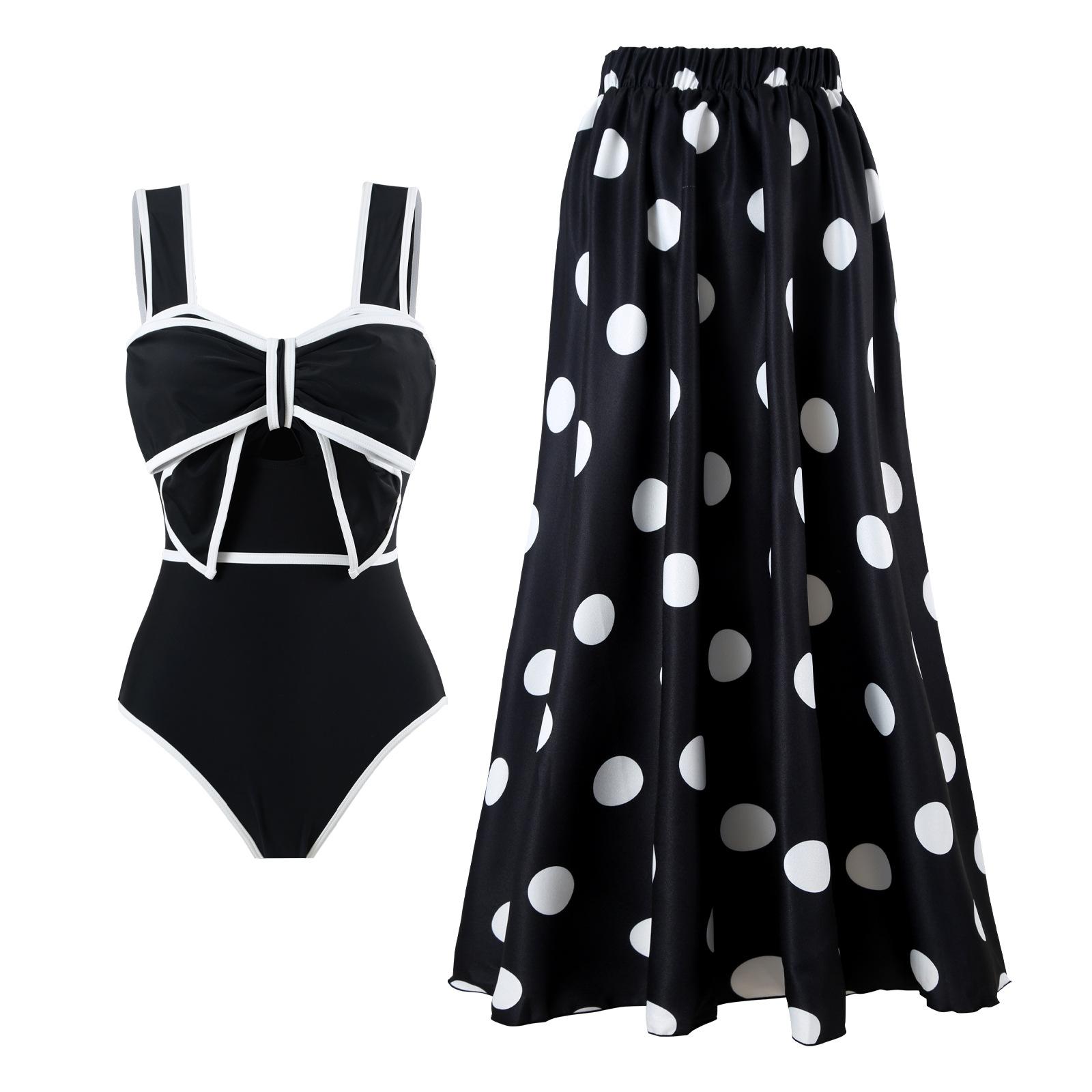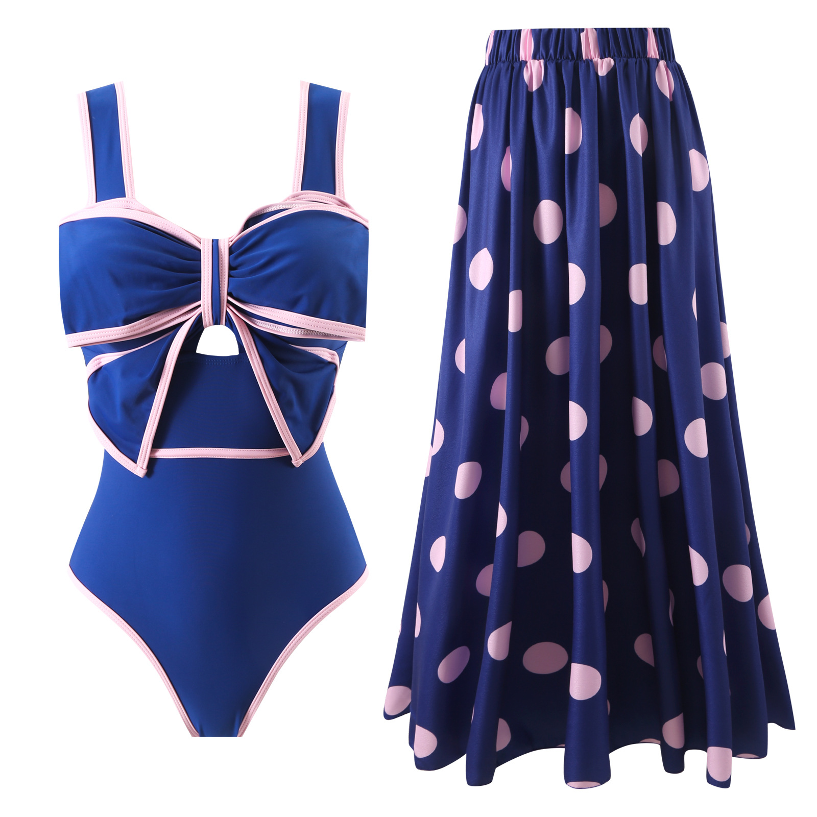 2025 유럽과 미국의 보헤미안 스타일 롬퍼 비키니 롱 라운드 스커트 홀리데이 세트 비치 선 스크린 수영복 여성