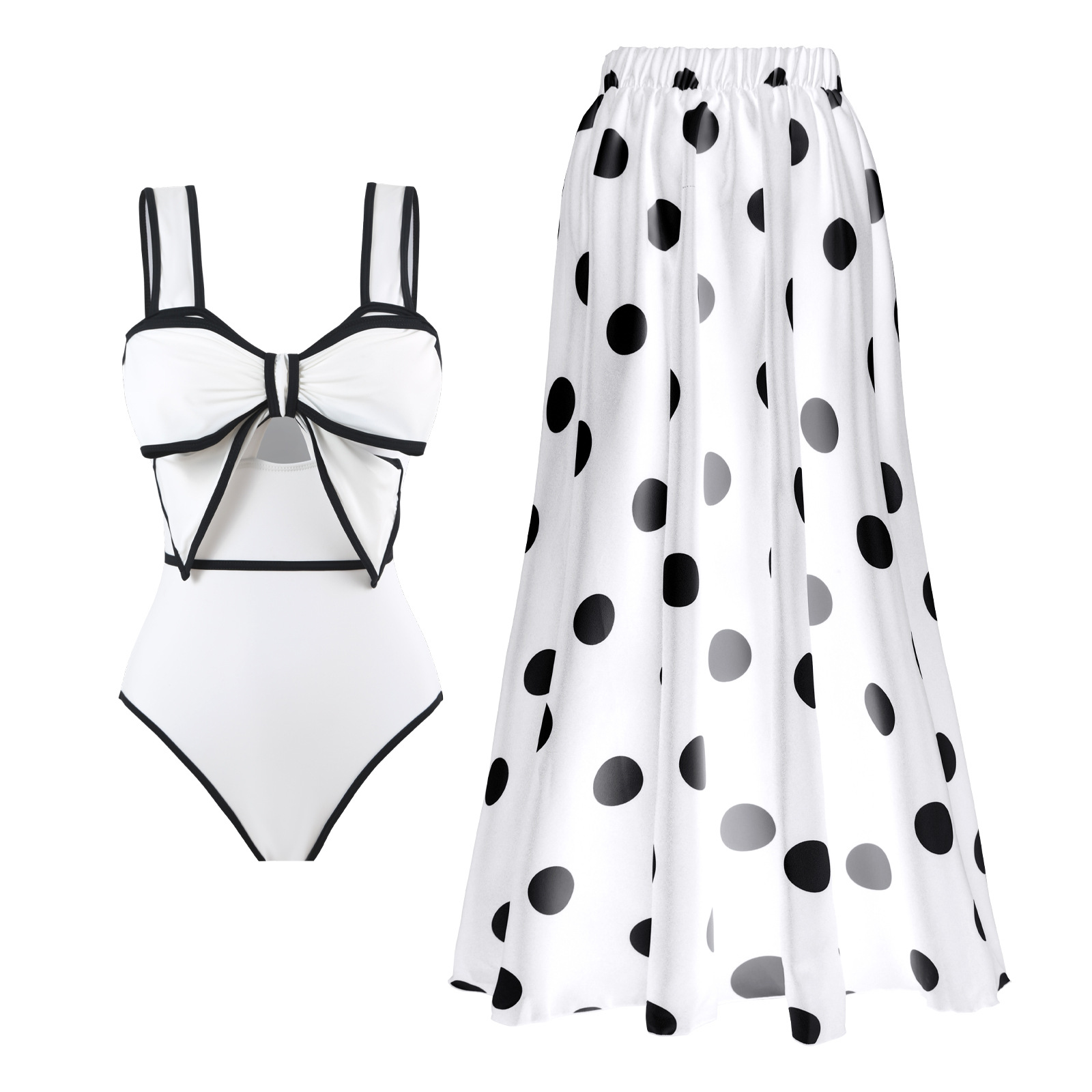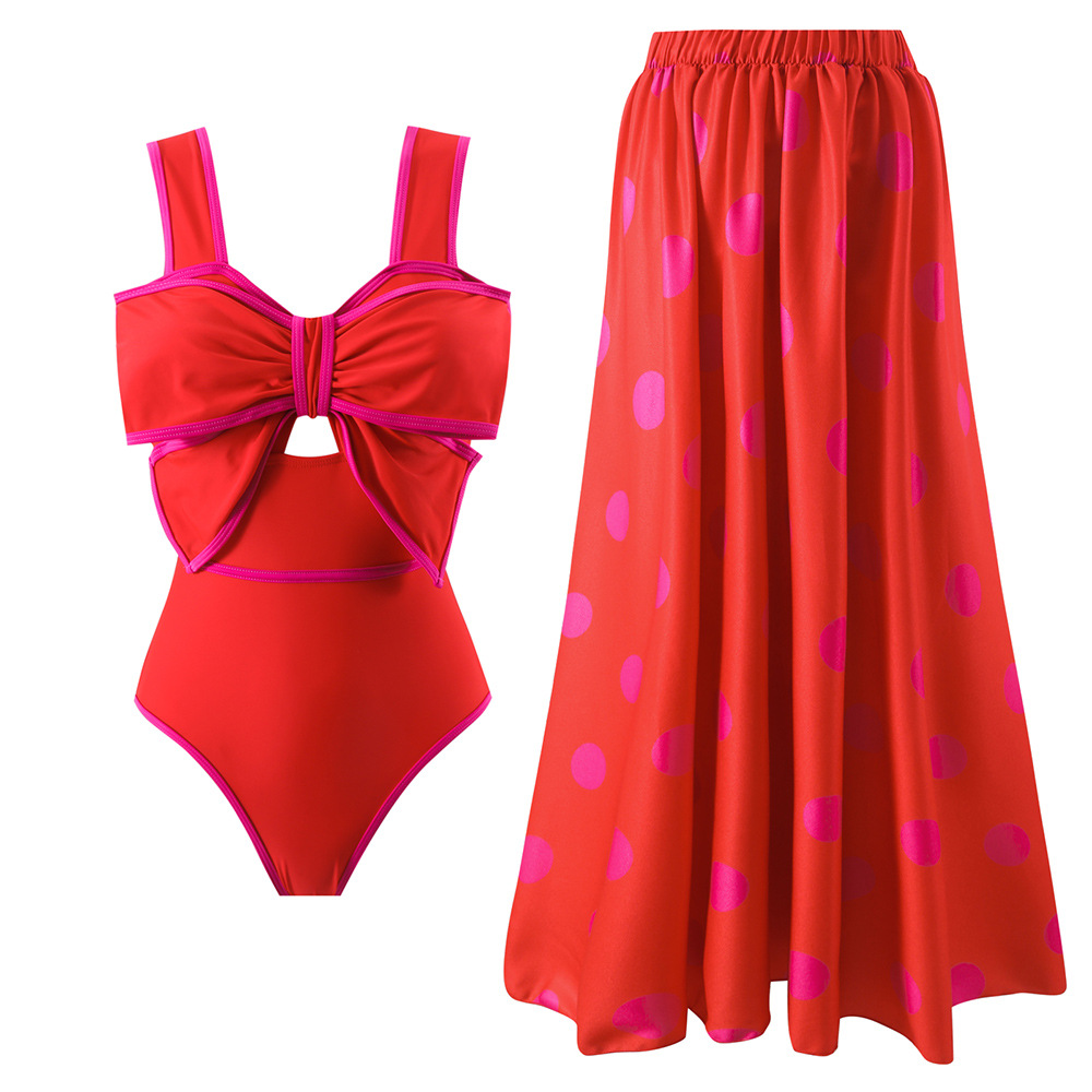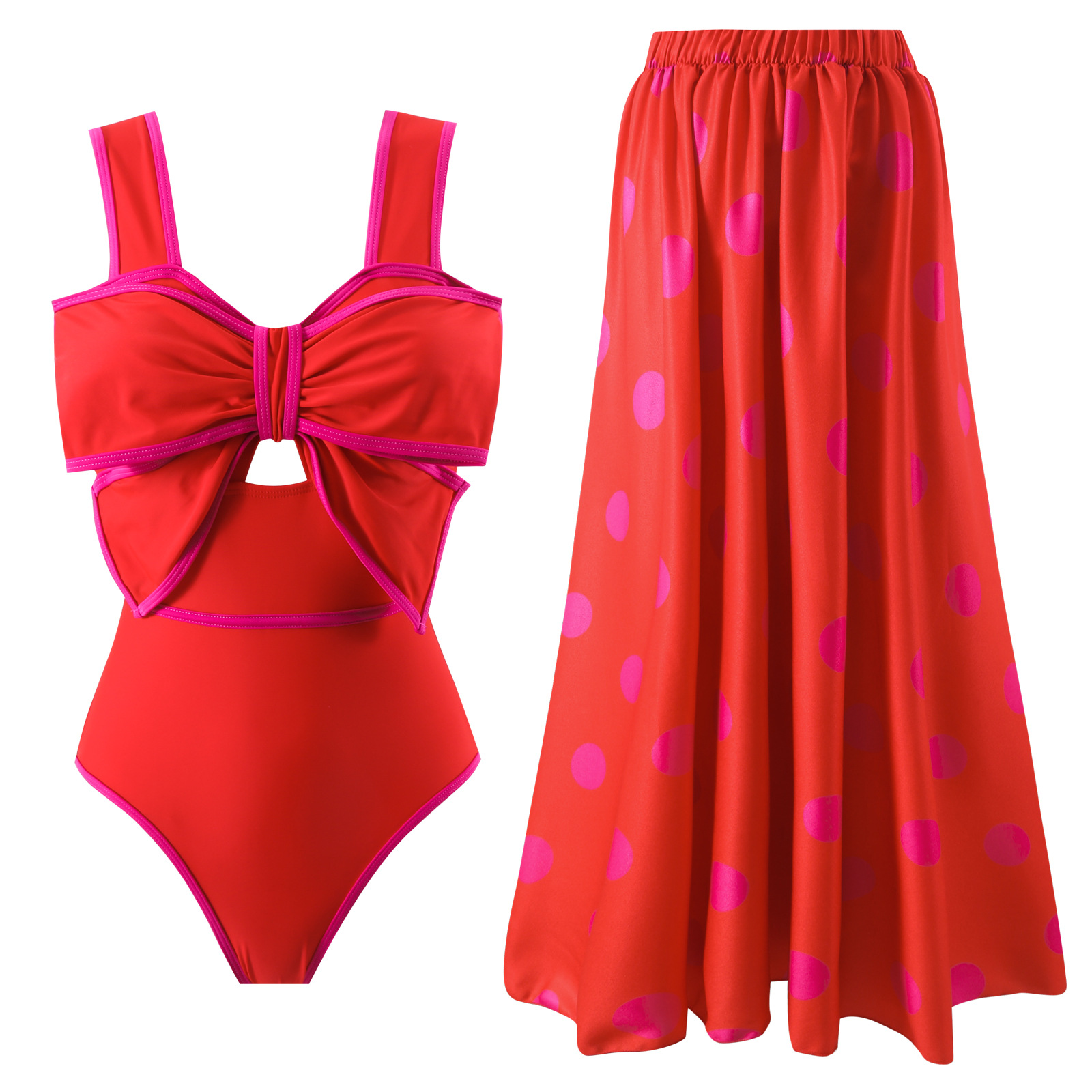 2025 유럽과 미국의 보헤미안 스타일 롬퍼 비키니 롱 라운드 스커트 홀리데이 세트 비치 선 스크린 수영복 여성