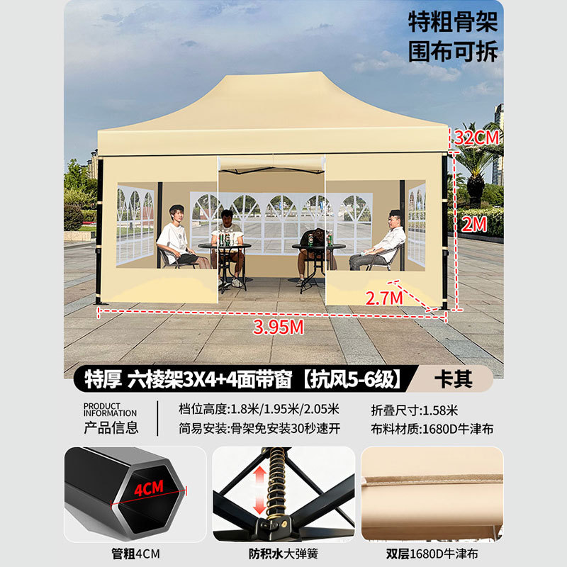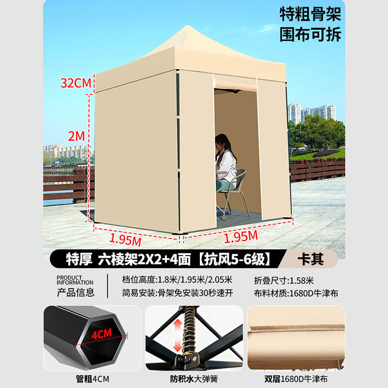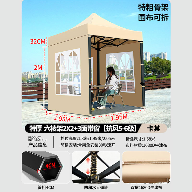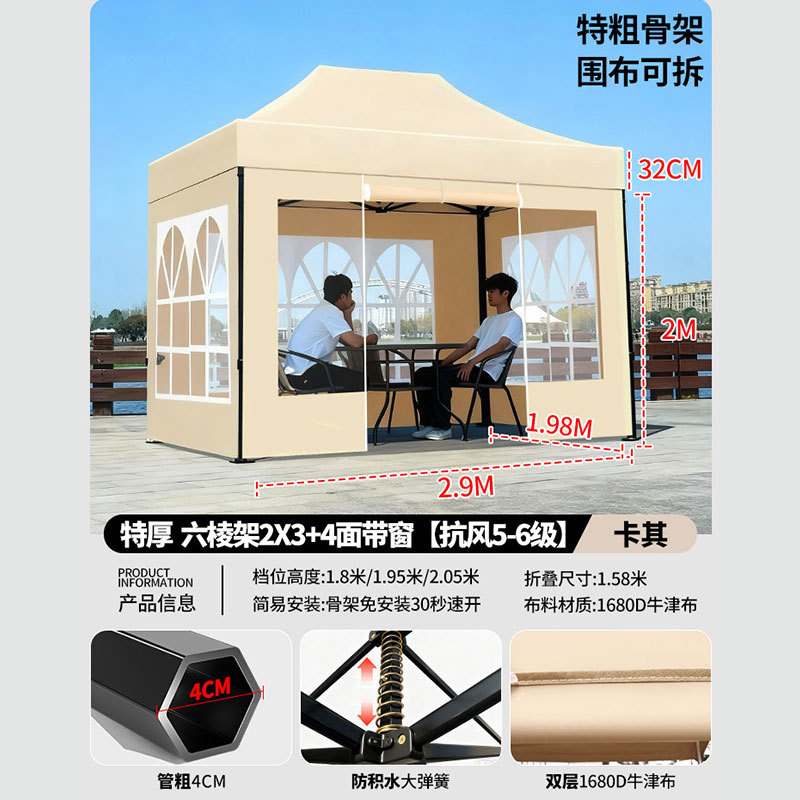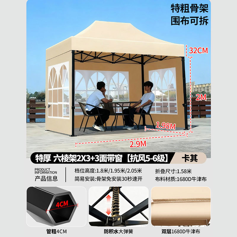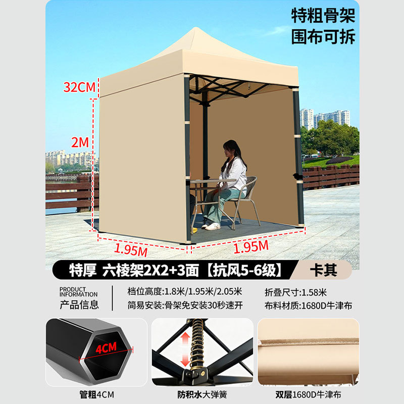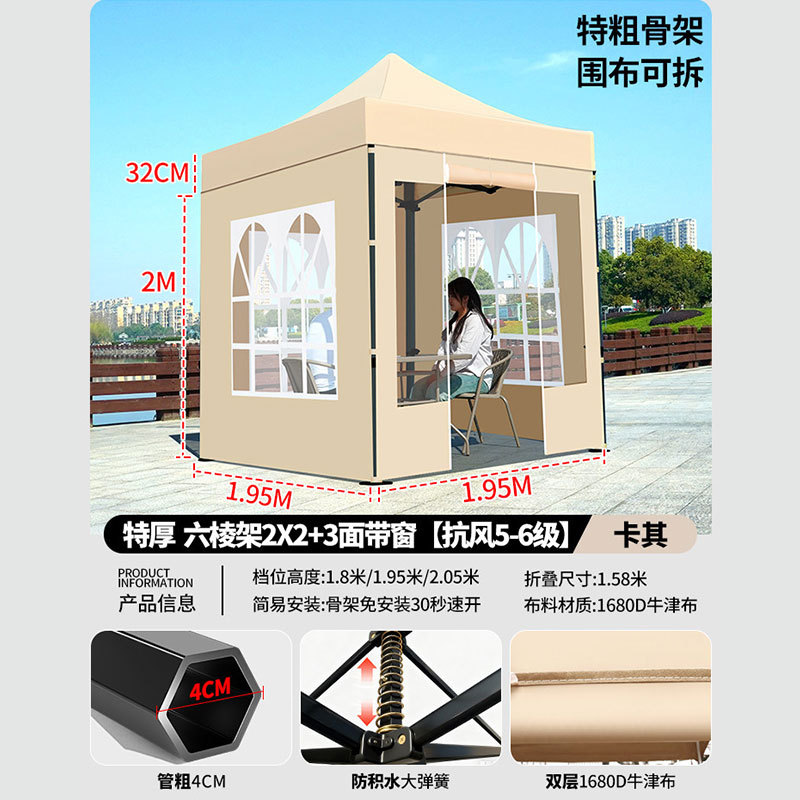 • 매우 두꺼운 검정색 육각형 2x2+3면 천 창 모델 카키색 [비 및 강한 바람 방지 + 따뜻하고 탈착 가능 + 다양한 색상 사용 가능]
