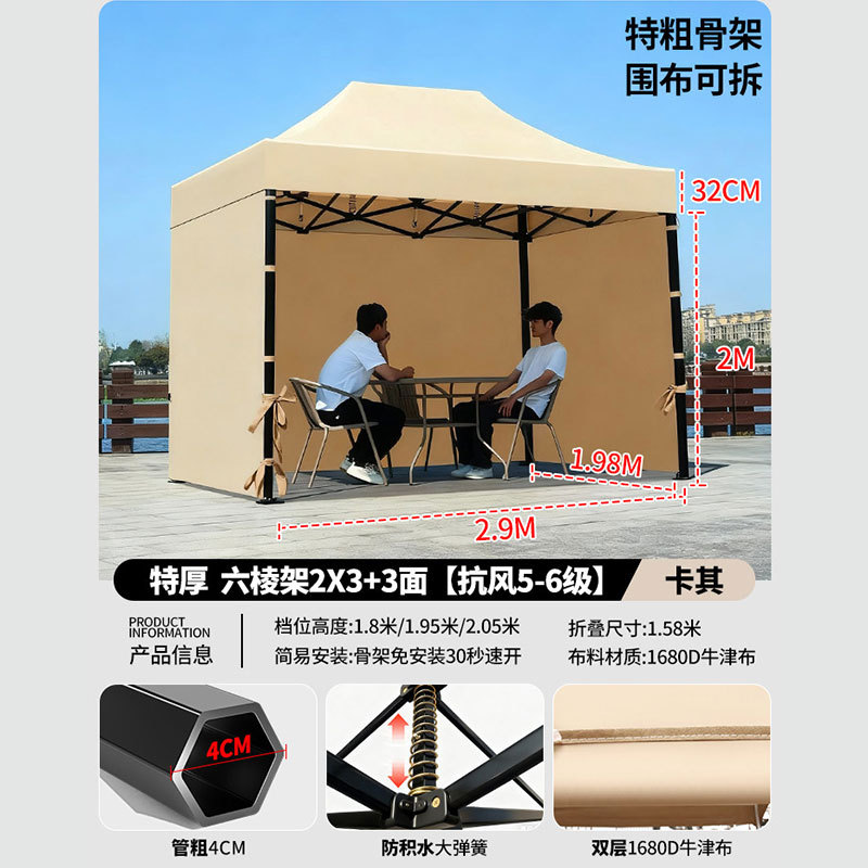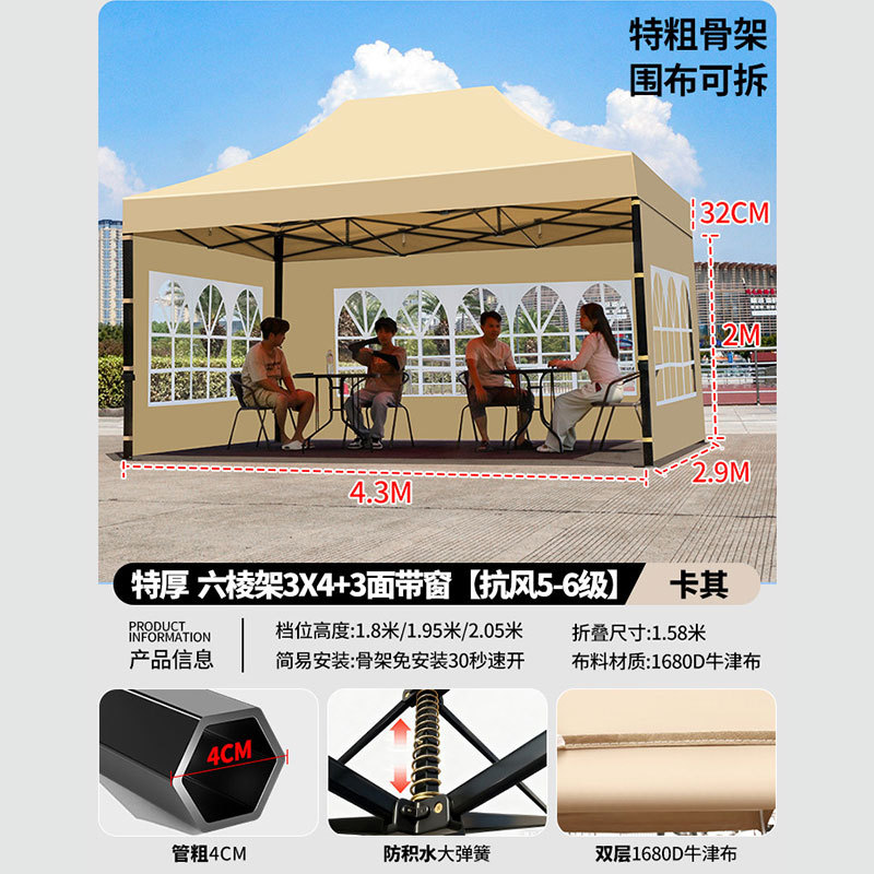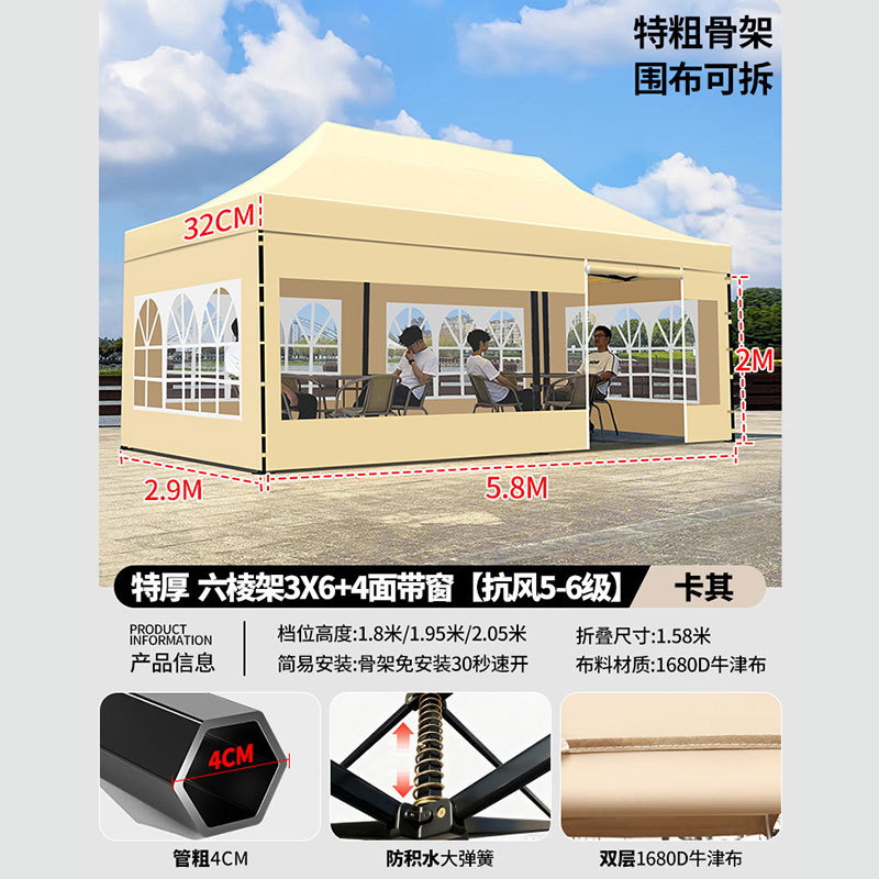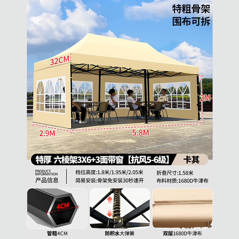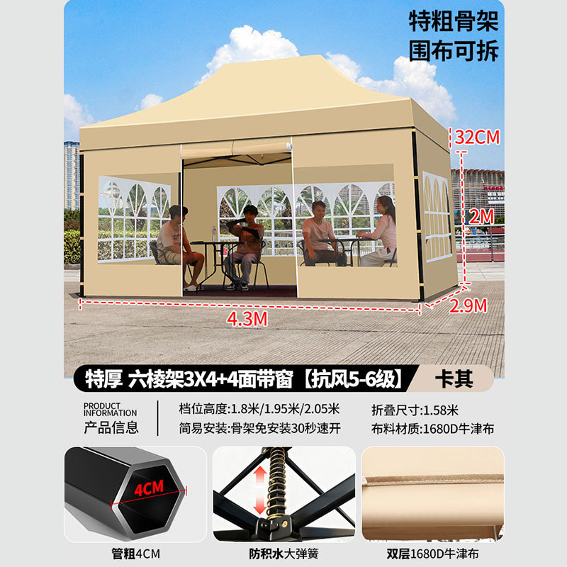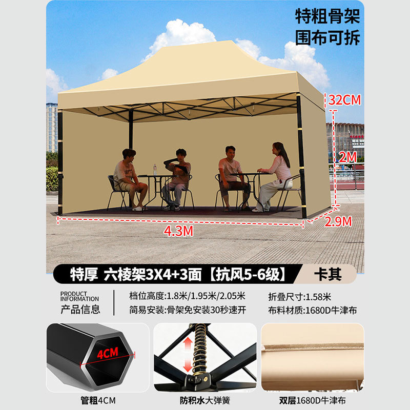 • 3X 4.5m 두꺼운 육각 프레임 카키 [주로 추천 무거운 28kg 5년 보증]