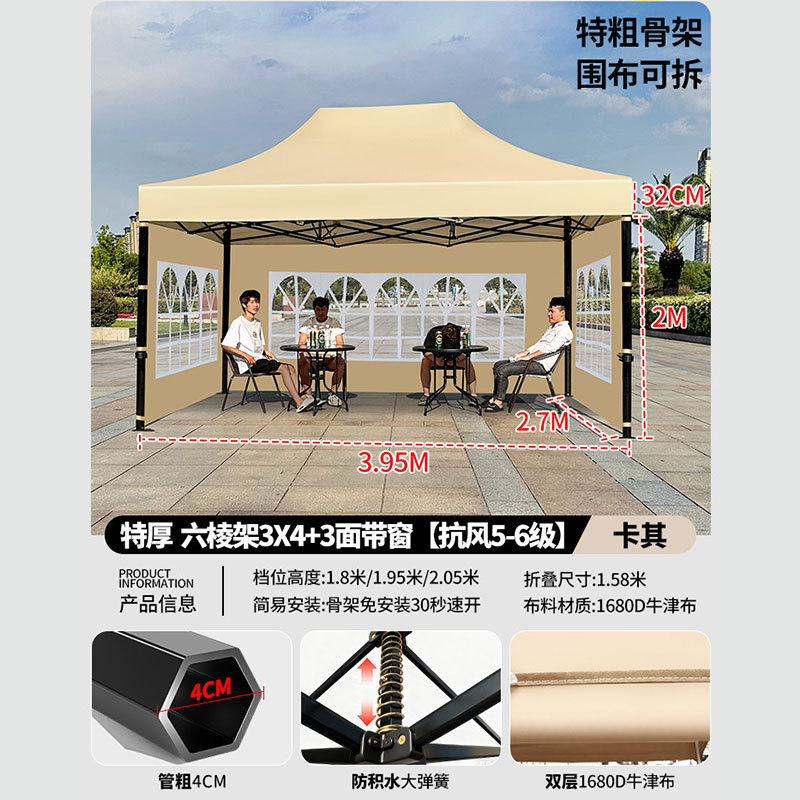 • 매우 두꺼운 검정색 육각형 3x4.5+3면 천 창 모델 카키색 [비 및 강한 바람 방지 + 따뜻하고 탈착 가능 + 다양한 색상 사용 가능]
