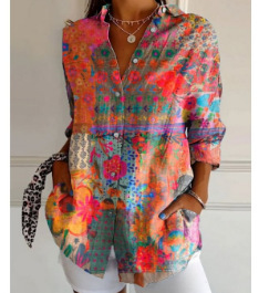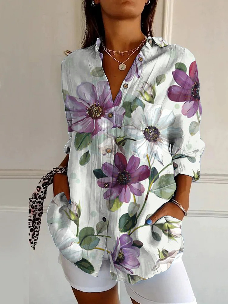 국경 간 유럽과 미국의 새로운 여성 셔츠 여름 트렌드 긴 소매 셔츠 꽃 패턴 3D 인쇄 셔츠 POD 사용자 정의스토어 가기