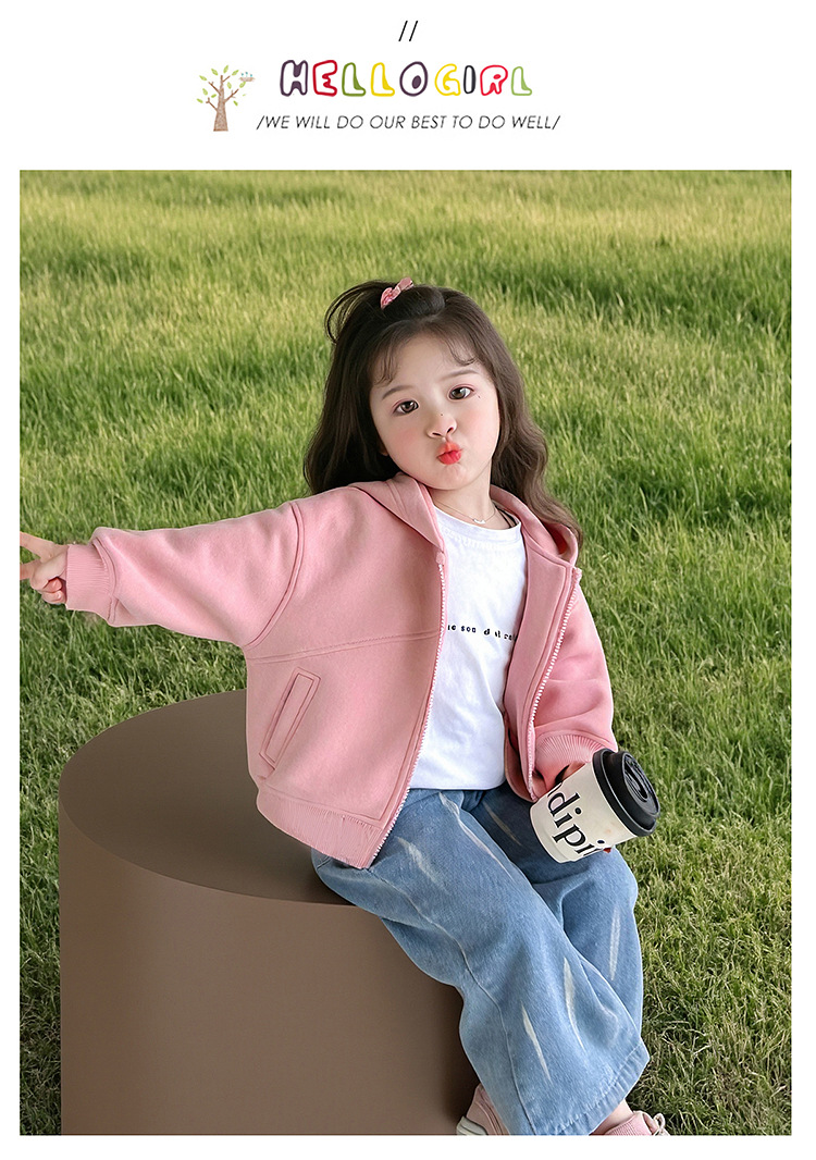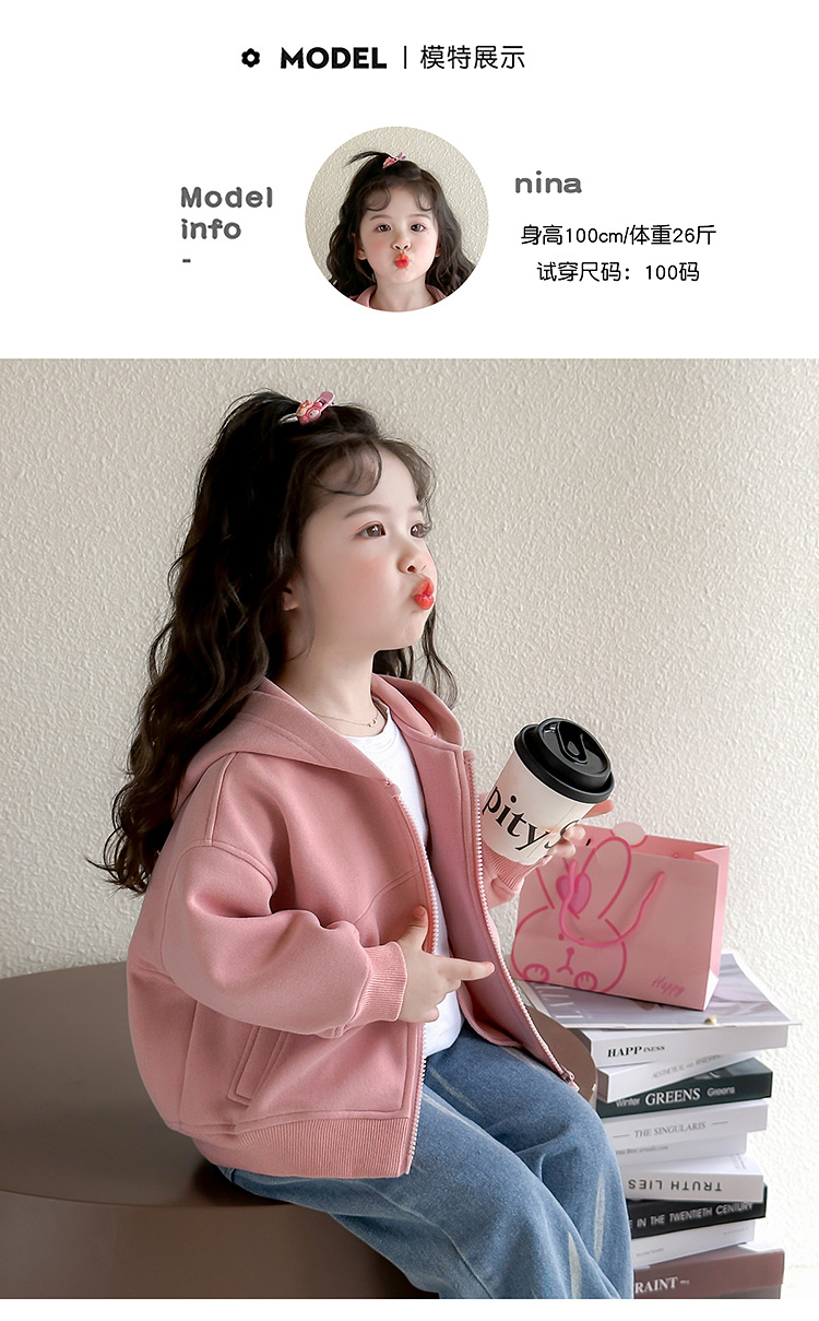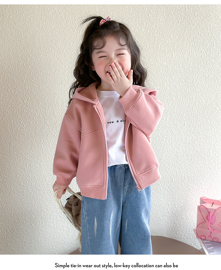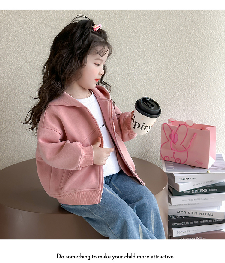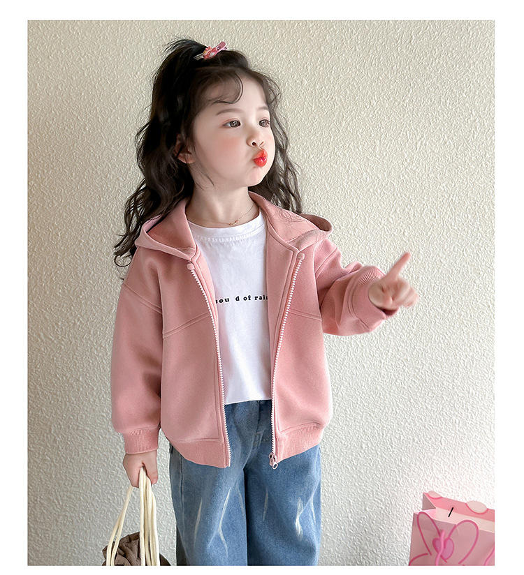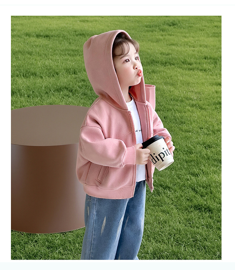 소녀 코트 2025 새로운 도착 봄과 가을 카디건 캐주얼 솔리드 컬러 후드 스웨트 베이비 소녀 유행 유행 탑