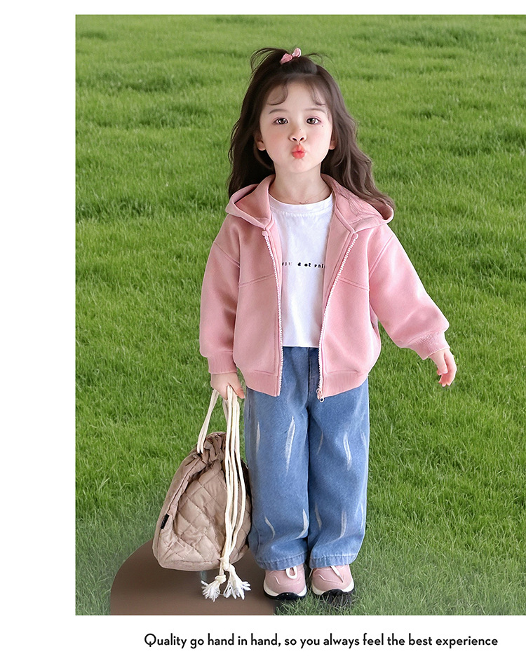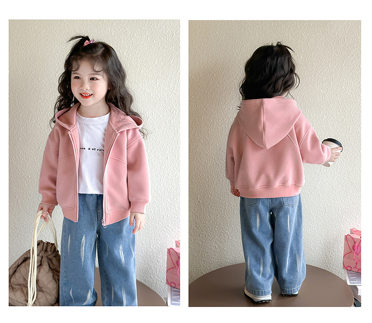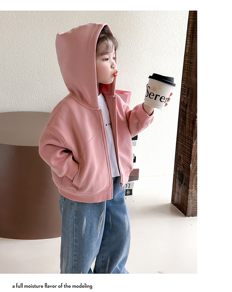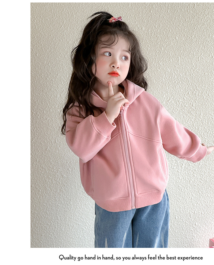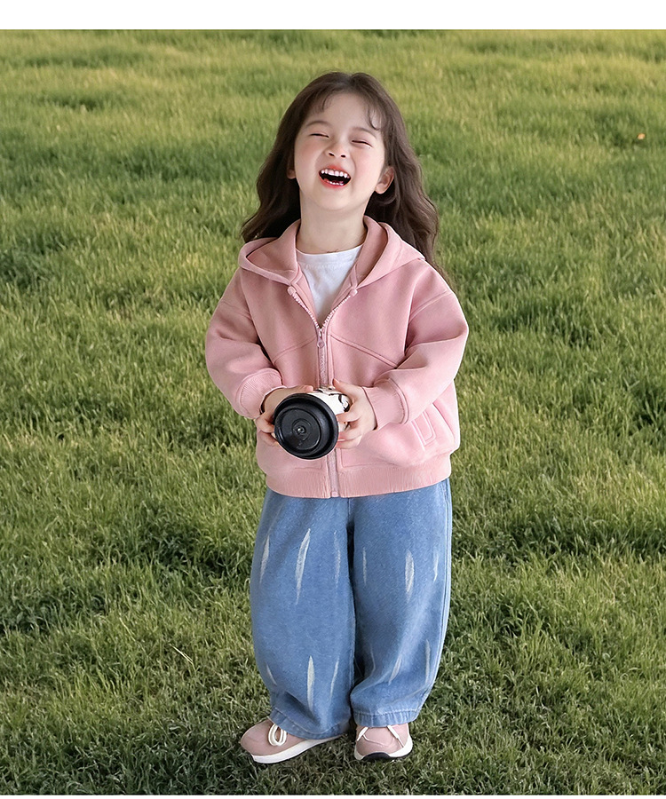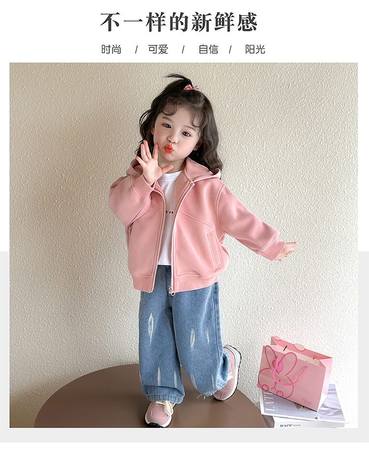 소녀 코트 2025 새로운 도착 봄과 가을 카디건 캐주얼 솔리드 컬러 후드 스웨트 베이비 소녀 유행 유행 탑