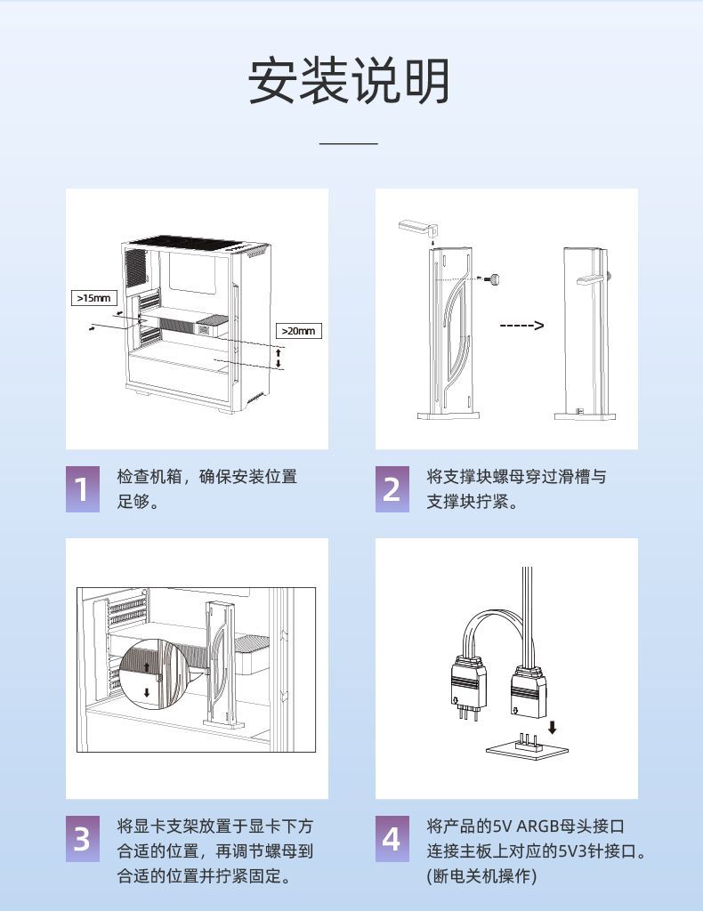 Kuyue 데스크탑 컴퓨터 그래픽 카드 지원 40 시리즈 그래픽 카드 보호 ARGB shuang 동기 자기 흡입 수직 그래픽 카드 브래킷