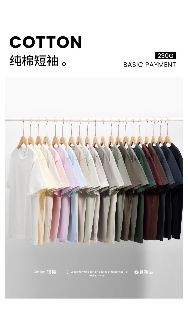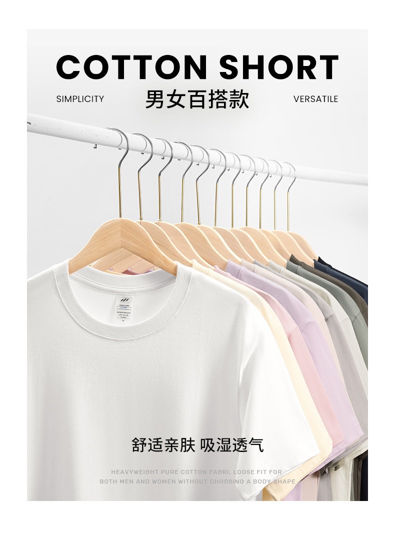 230g 무거운 면 짧은 소매 티셔츠 남자의 여름 느슨한 기본 흑백 반 소매 라운드 목 내베이스 셔츠스토어 가기