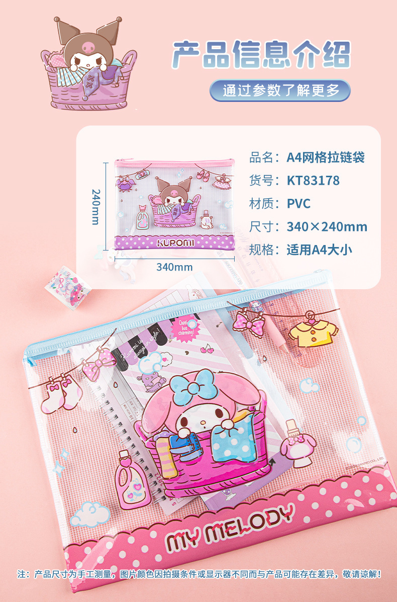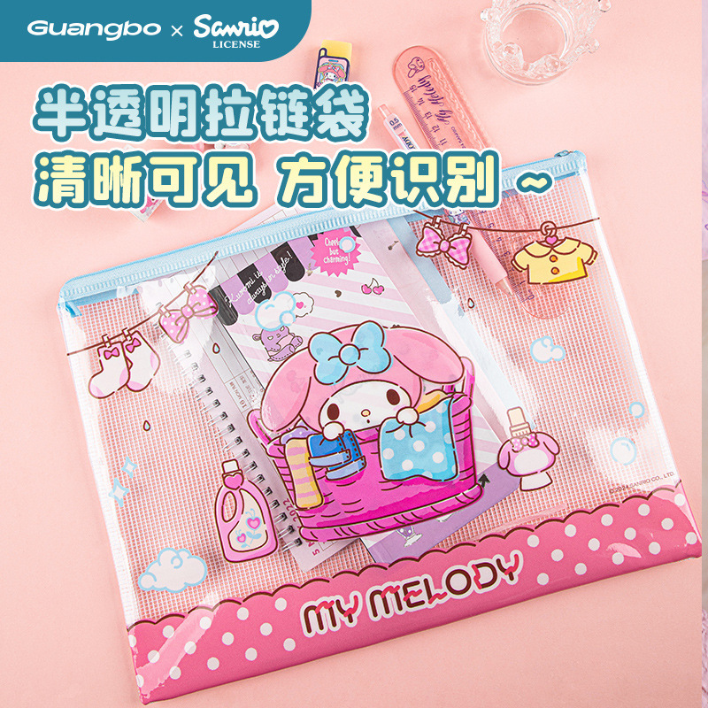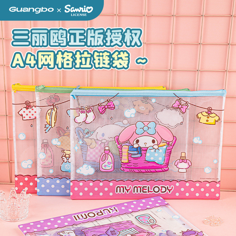Guangbo Sanlio 시리즈 지퍼 가방 높은 색상 가치 귀여운 스타일 학습 사무실 데이터 파일 저장 가방 A4A5스토어 가기