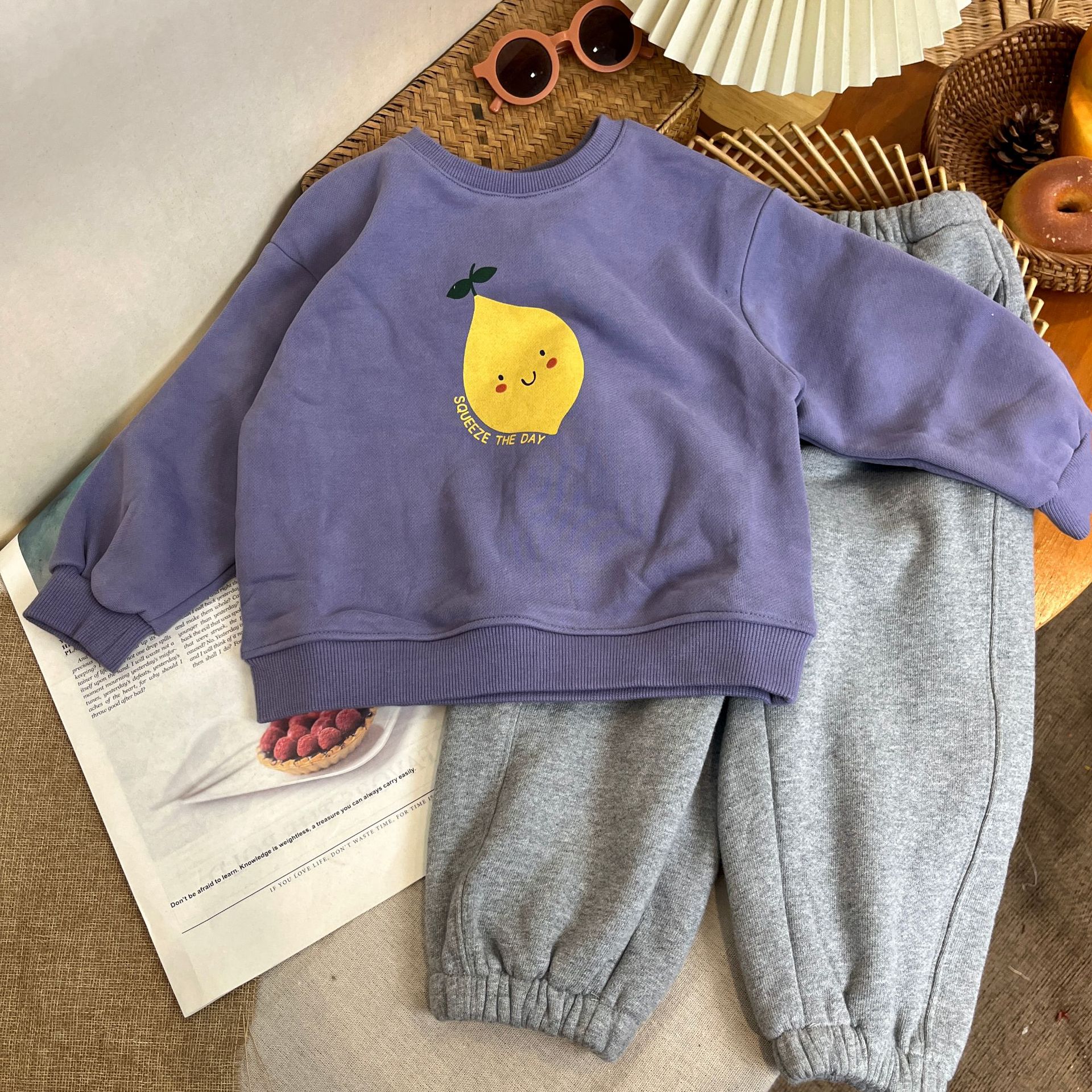 재고 ~ 2024 소녀 가을과 겨울 귀여운 기모 만화 풀오버 스웨터 아기 유치원 외국 스타일 세트 조수