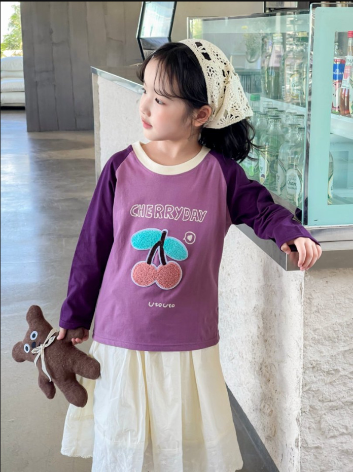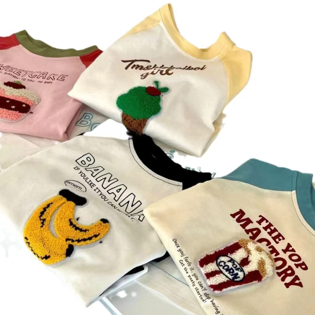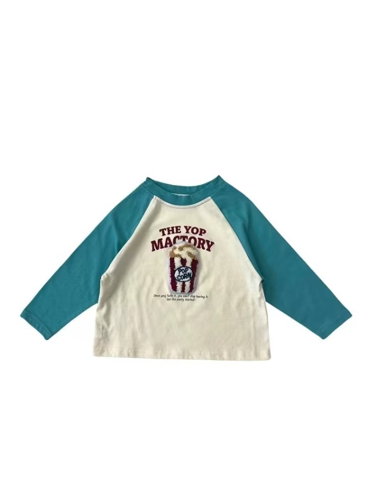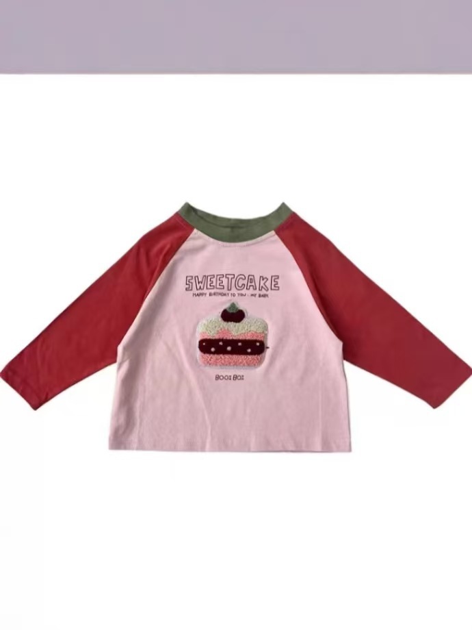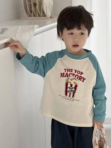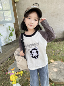 2025 봄 새로운 소년과 소녀 캐주얼 패션 라글란 슬리브 큰 아이 만화 티셔츠 베이스 탑스토어 가기