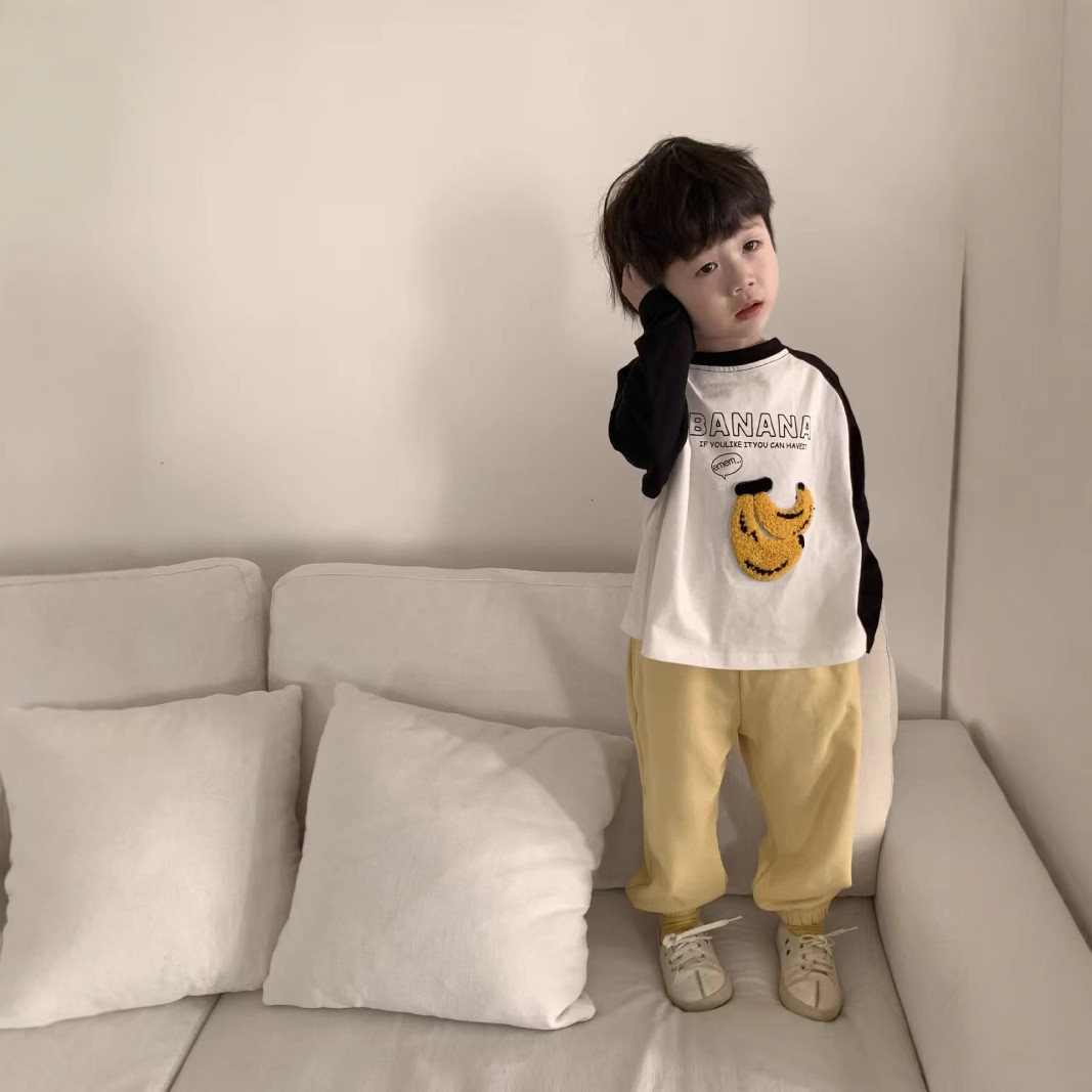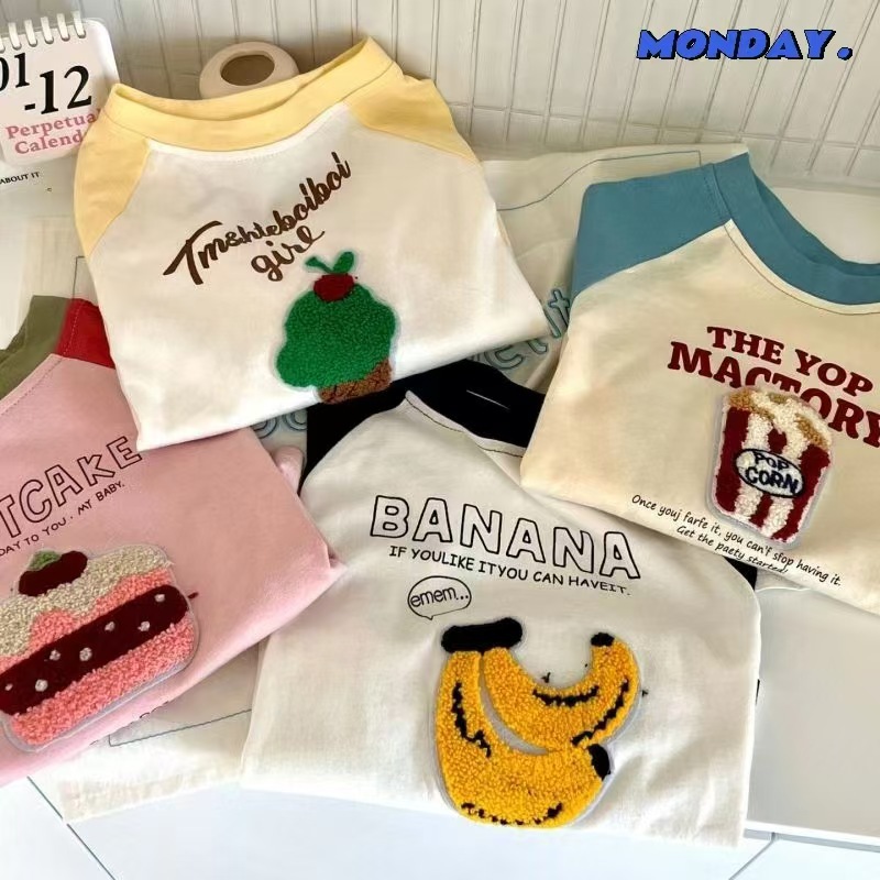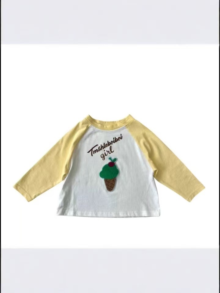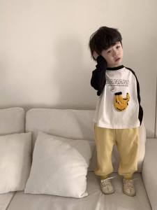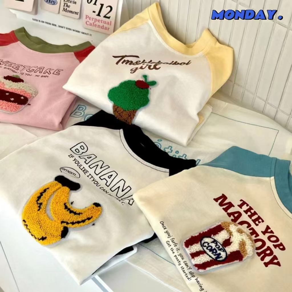2025 봄 새로운 소년과 소녀 캐주얼 패션 라글란 슬리브 큰 아이 만화 티셔츠 베이스 탑스토어 가기