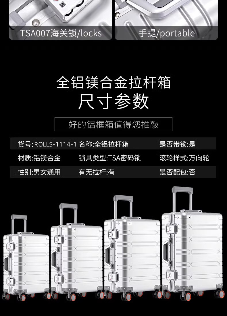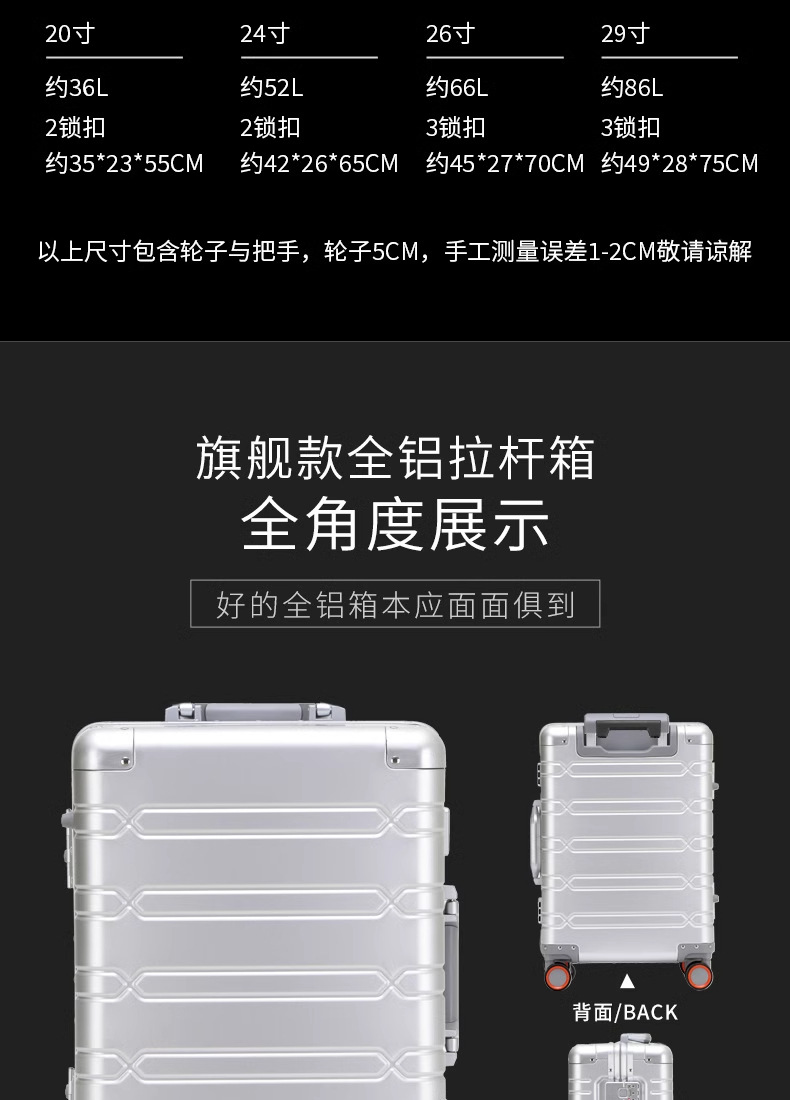 모든 알루미늄 마그네슘 합금 트롤리 케이스 유니버설 휠 알루미늄 합금 수하물 케이스 여성 24 금속 케이스 암호 탑승 케이스 하드 케이스스토어 가기