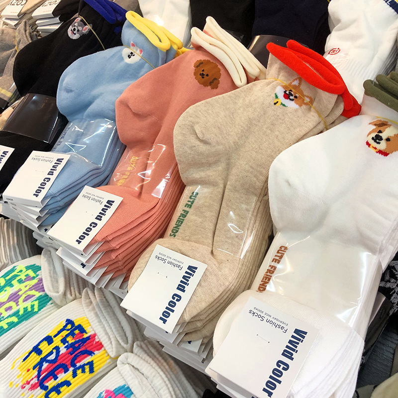 [재고] 한국 양말 vividcolor 귀여운 애완견 만화 양말 일본 작은 곱슬 여성 면 양말스토어 가기