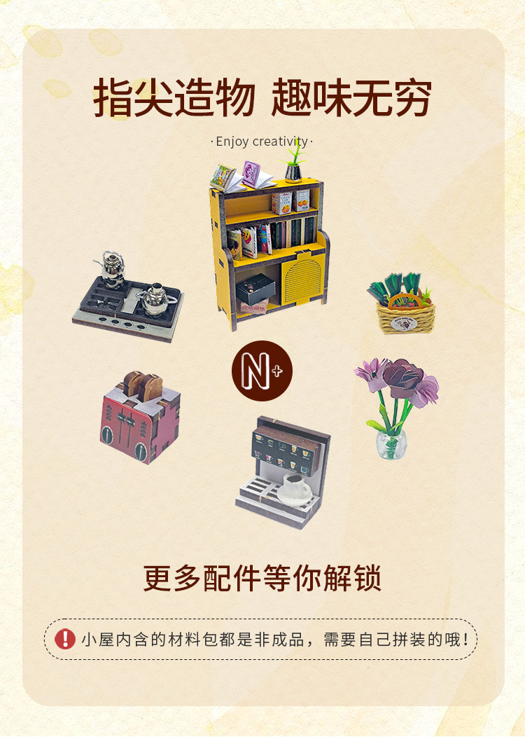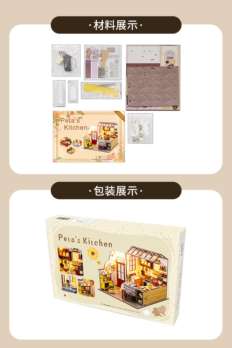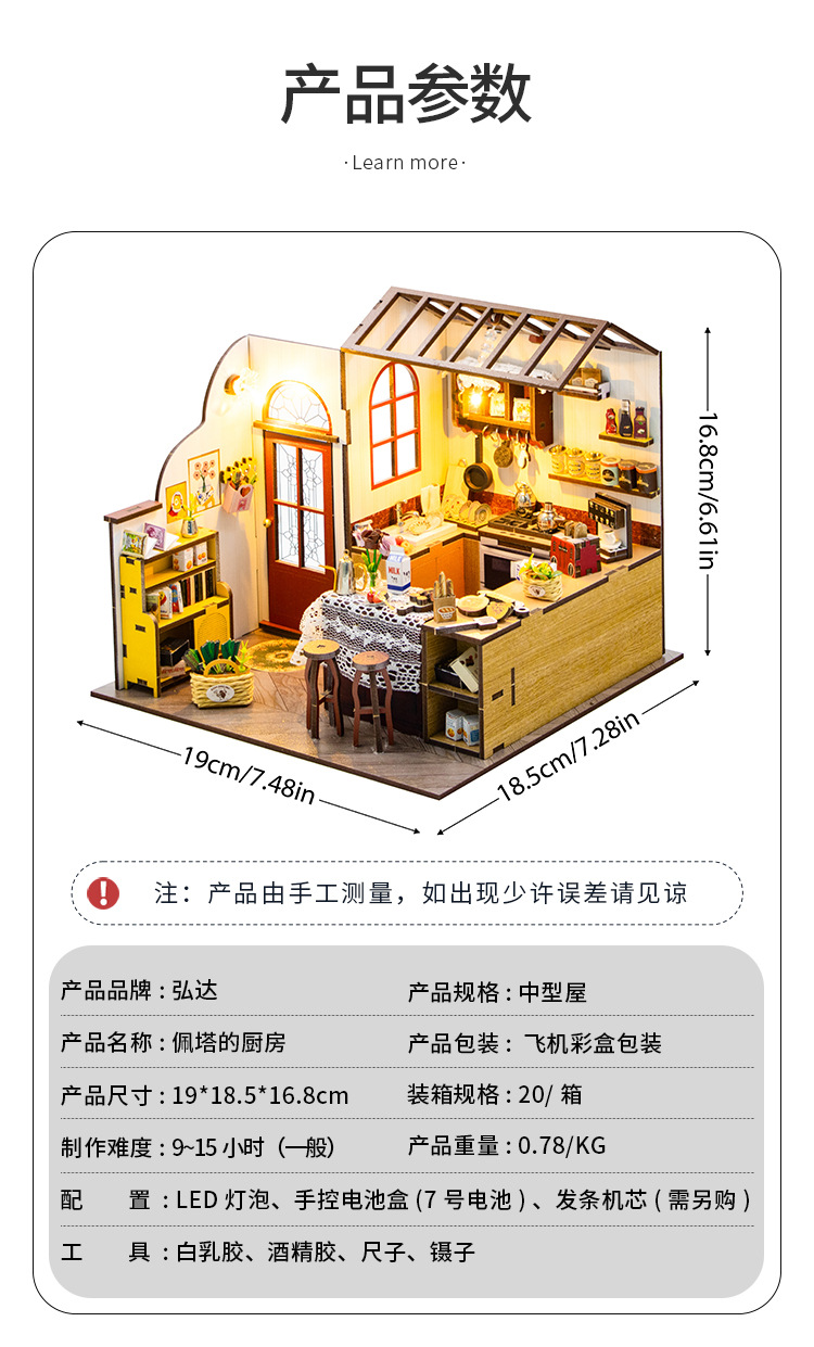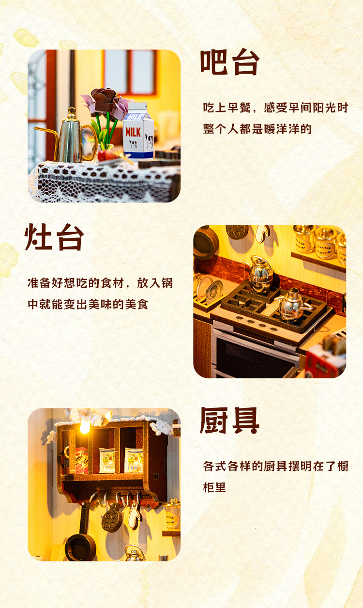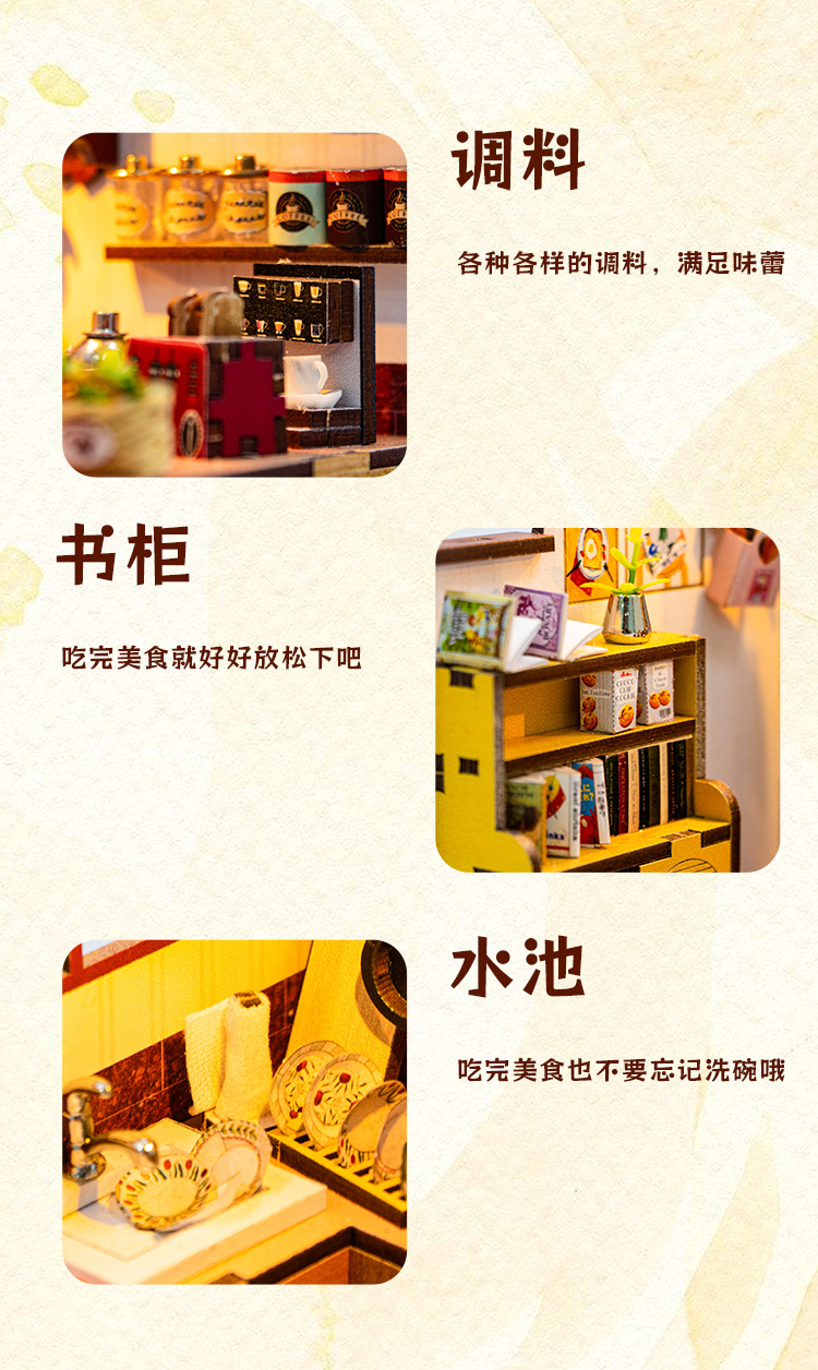 홍다 미니어처 부엌 DIY 퍼즐 수제 인형 집 모델 3D 나무 조립 인터넷 빨간 장난감 국경스토어 가기