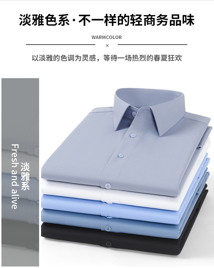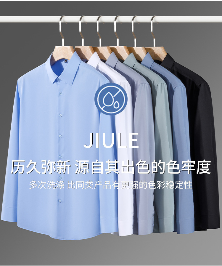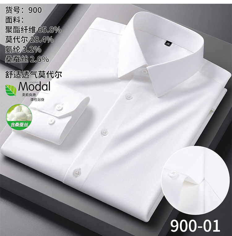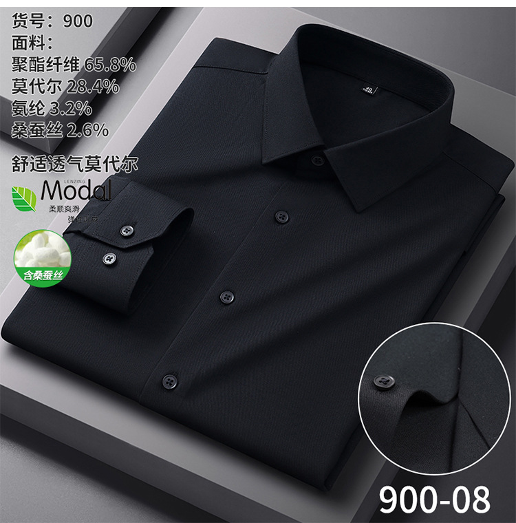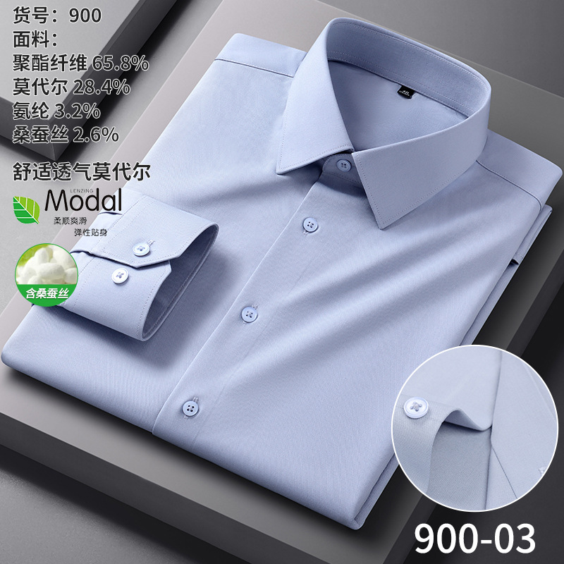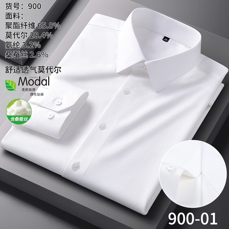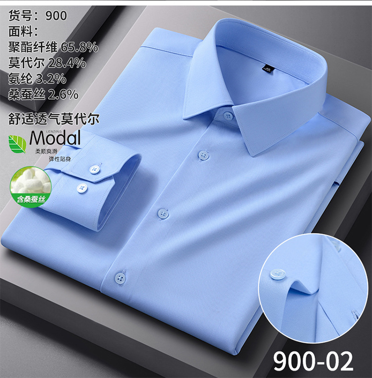【신상품】남성용 멀버리 실크 긴팔 노아이론 셔츠 모달 비즈니스 캐주얼 신축성 솔리드 컬러 셔츠 면접용