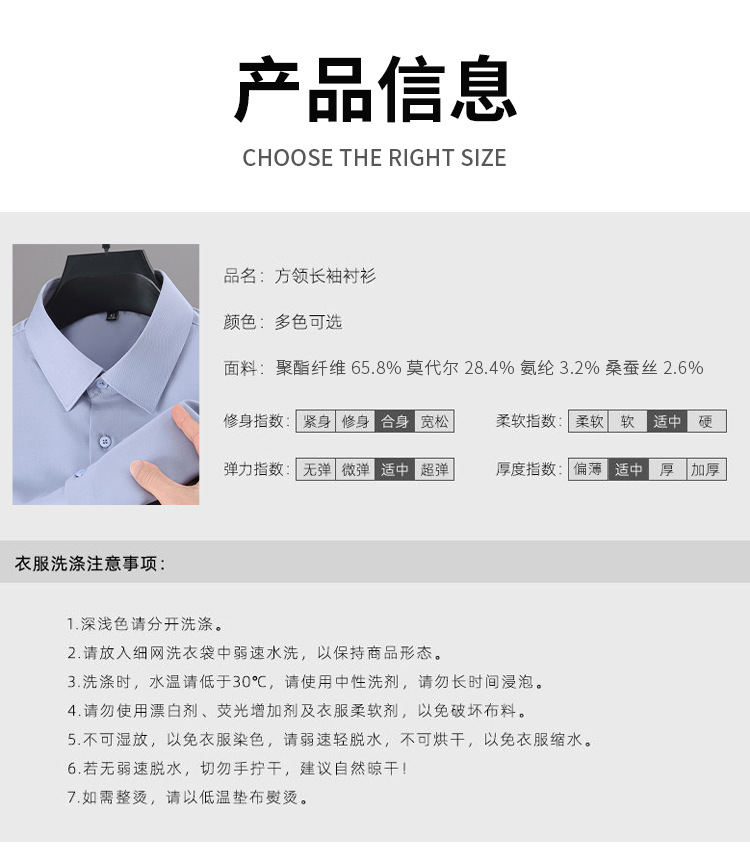【신상품】남성용 멀버리 실크 긴팔 노아이론 셔츠 모달 비즈니스 캐주얼 신축성 솔리드 컬러 셔츠 면접용스토어 가기