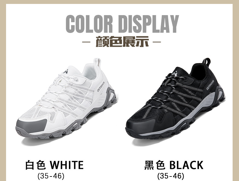 새로운 봄 여름 남성과 여성의 야외 신발 남성 메쉬 통기성 미끄럼 방지 커플 하이킹 운동화 로우 탑 하이킹 신발 도매스토어 가기