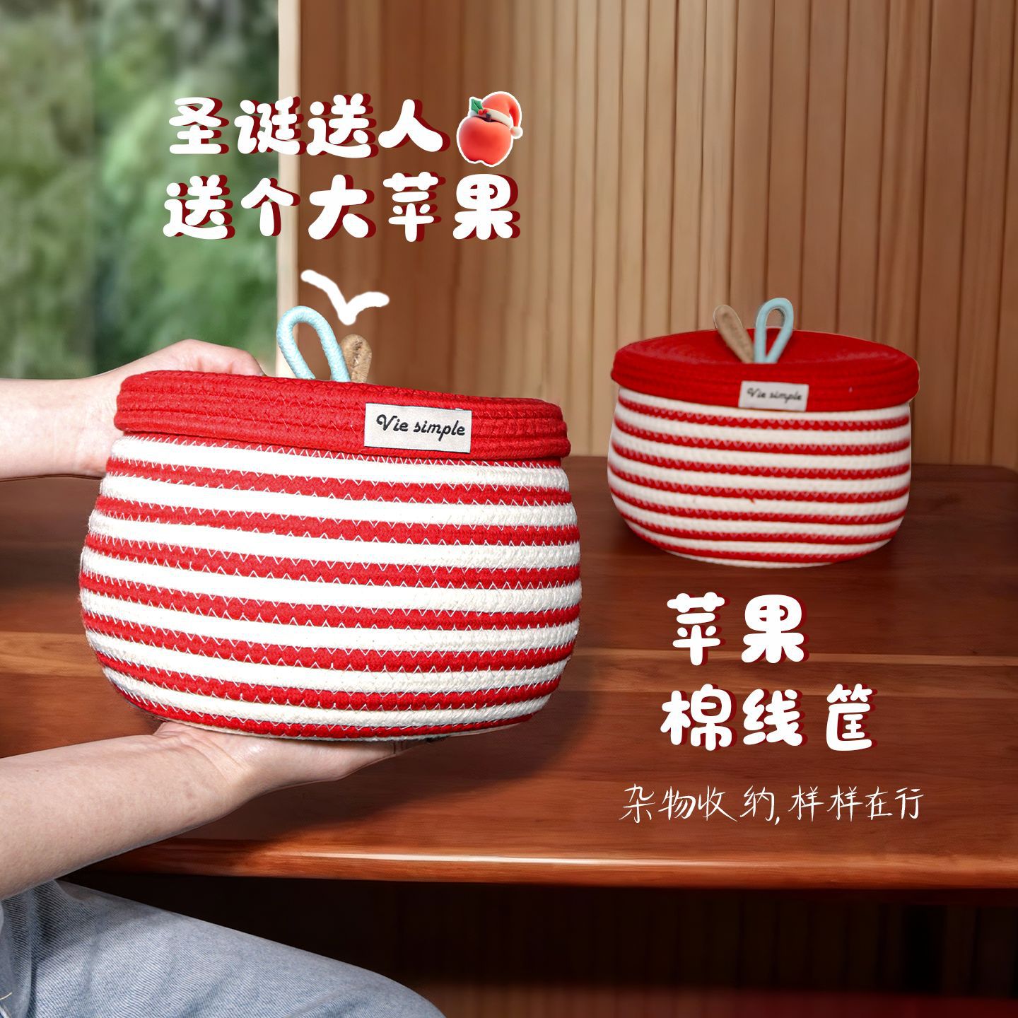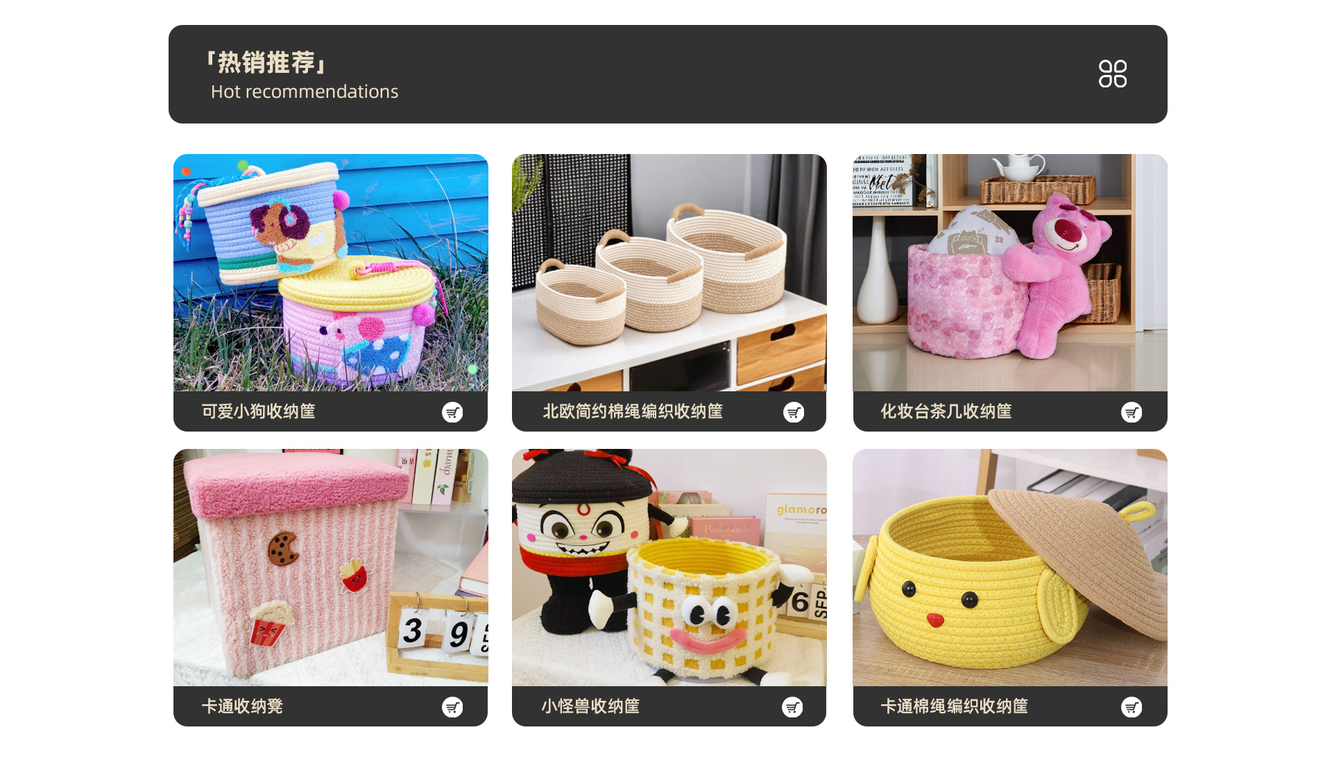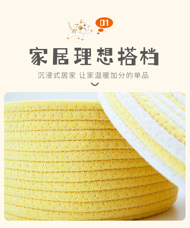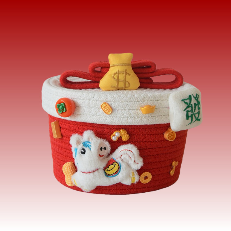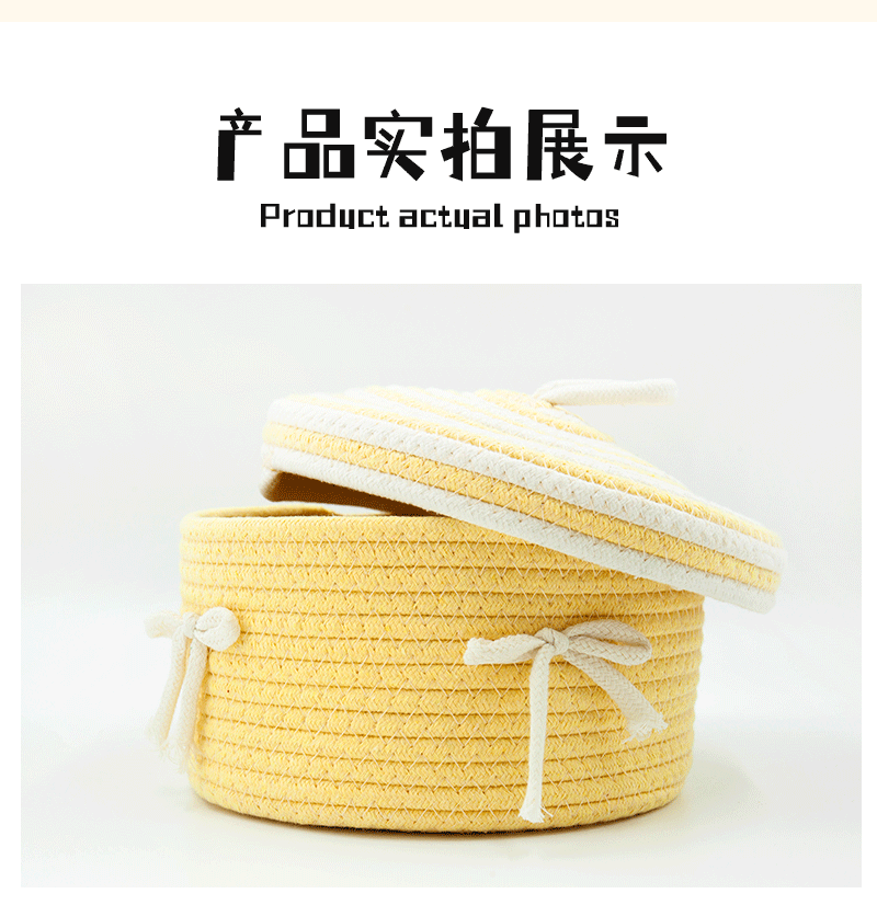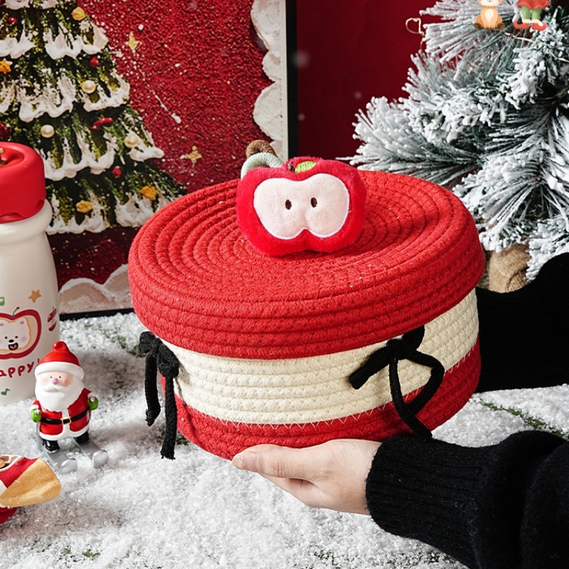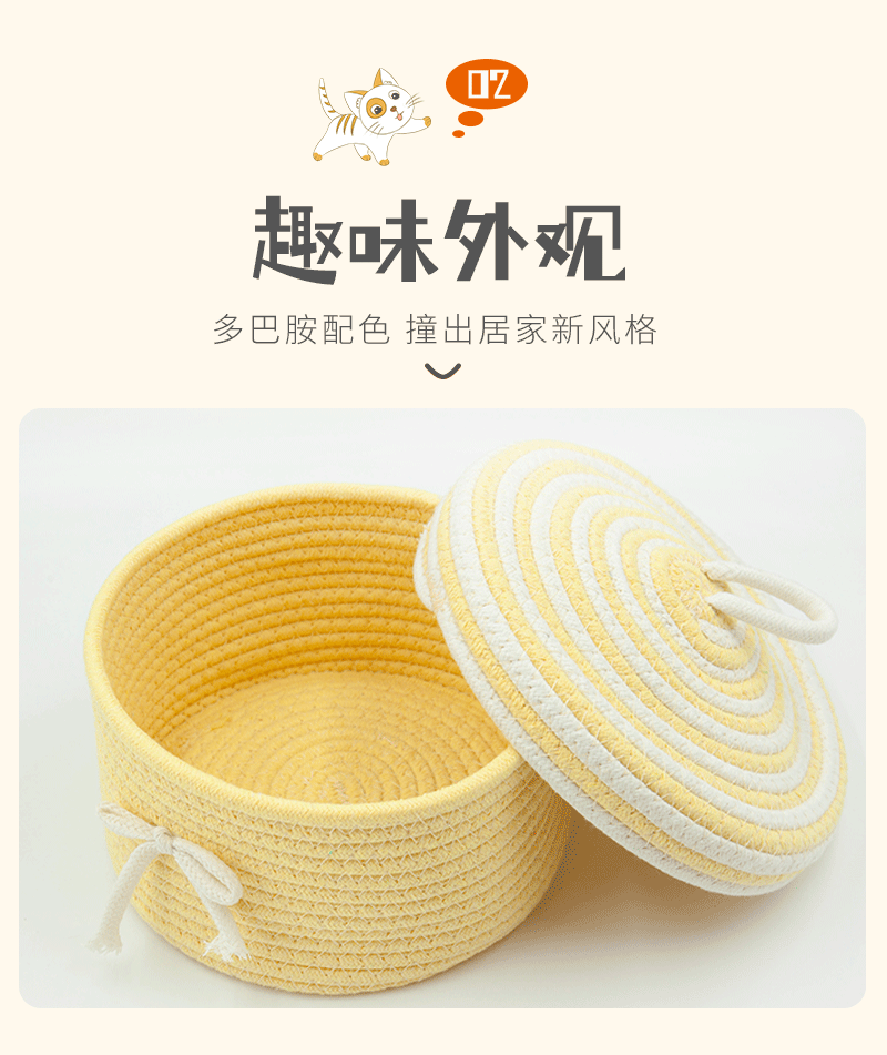 귀여운 면사로 짠 수납 바구니, 가정용 뚜껑 있는 수납 바구니, 잡화 수납 바구니, 데스크탑 먼지 방지 장식품, 서랍 수납함스토어 가기