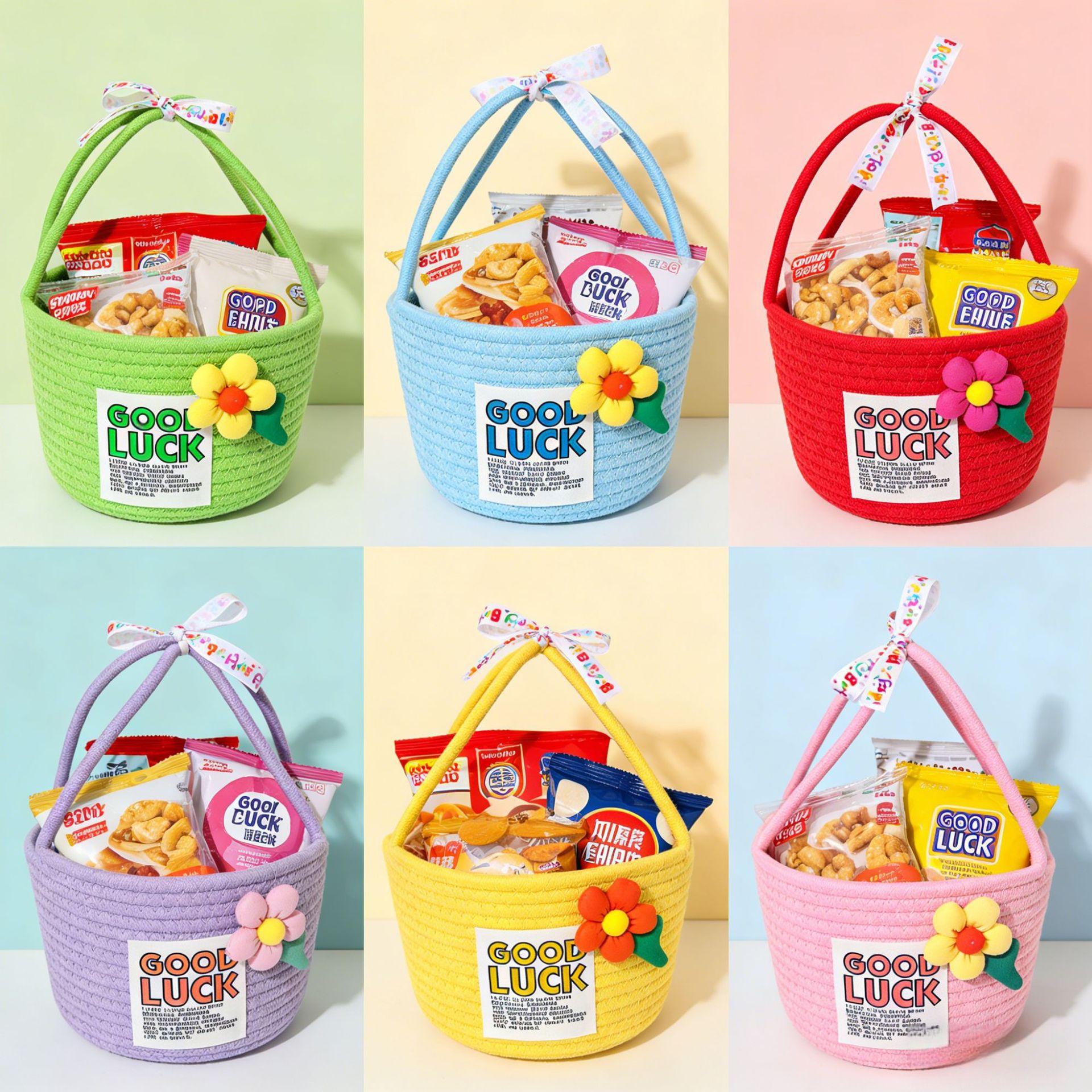 • 노란색 뚜껑 중공 컬러 도트 보관 바구니 22*19