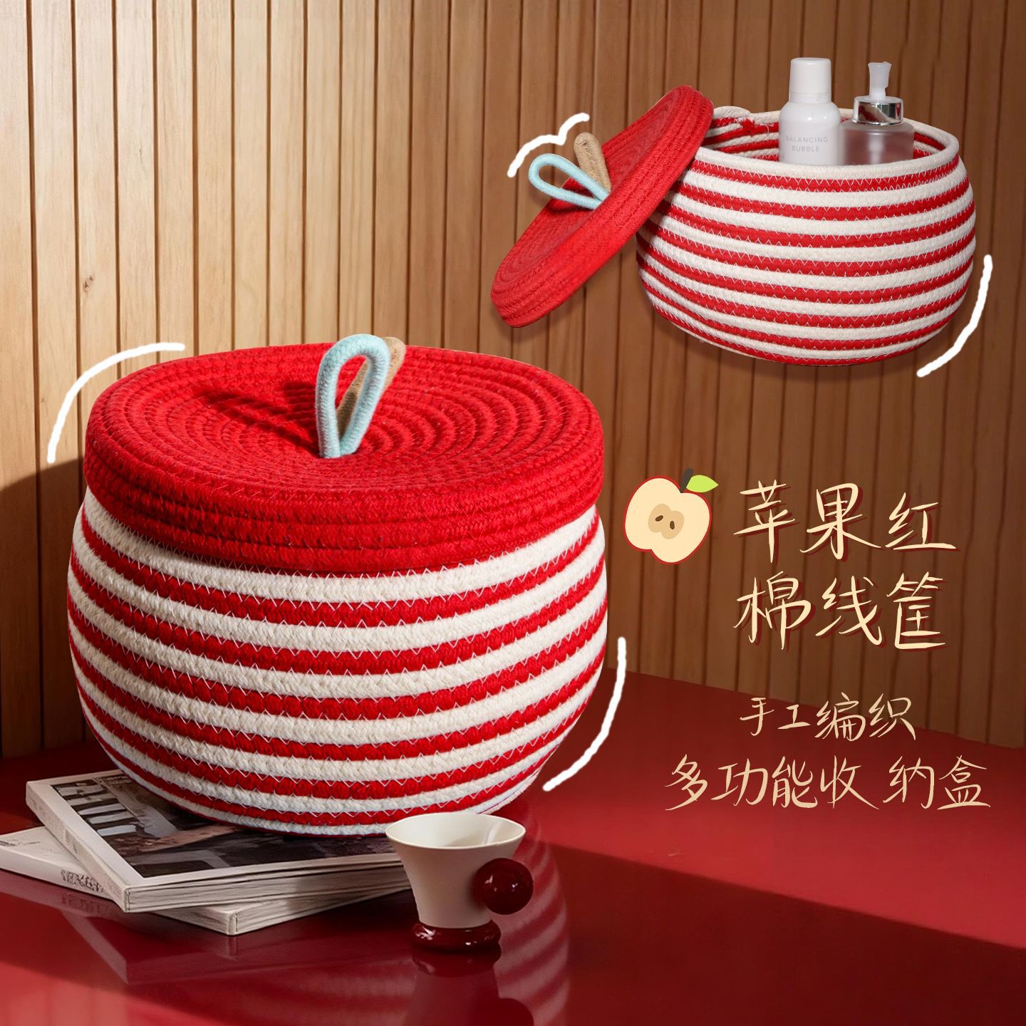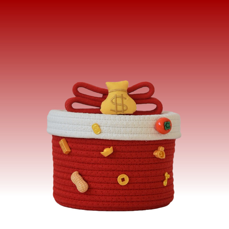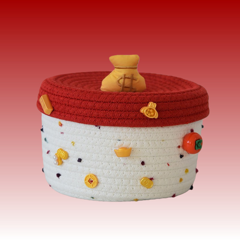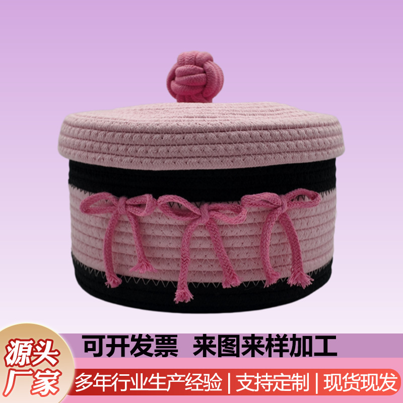 귀여운 면사로 짠 수납 바구니, 가정용 뚜껑 있는 수납 바구니, 잡화 수납 바구니, 데스크탑 먼지 방지 장식품, 서랍 수납함