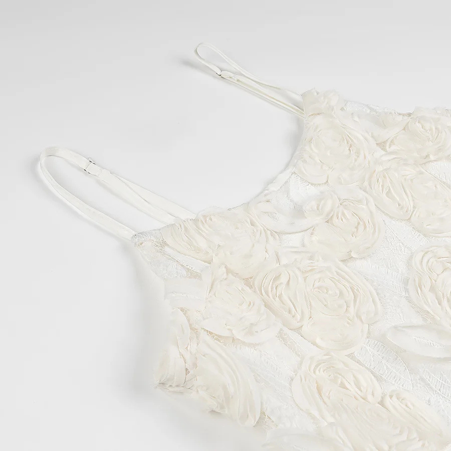 국경 간 유럽과 미국 여성의 AliExpress 폭발 3 차원 장미 장식 러플 스티칭 슬링 원피스