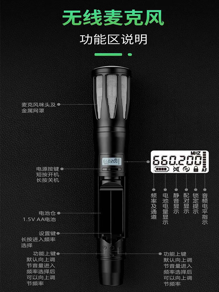 • 검정색 3315 단일 마이크 + 충전식 배터리 + 충전 스탠드